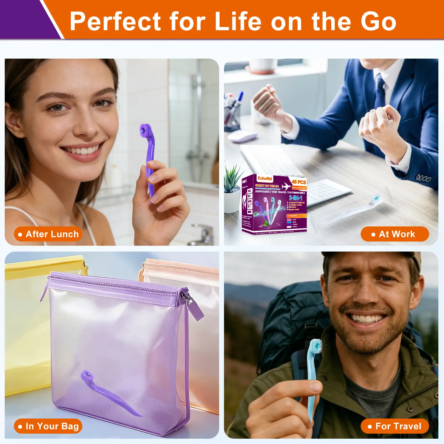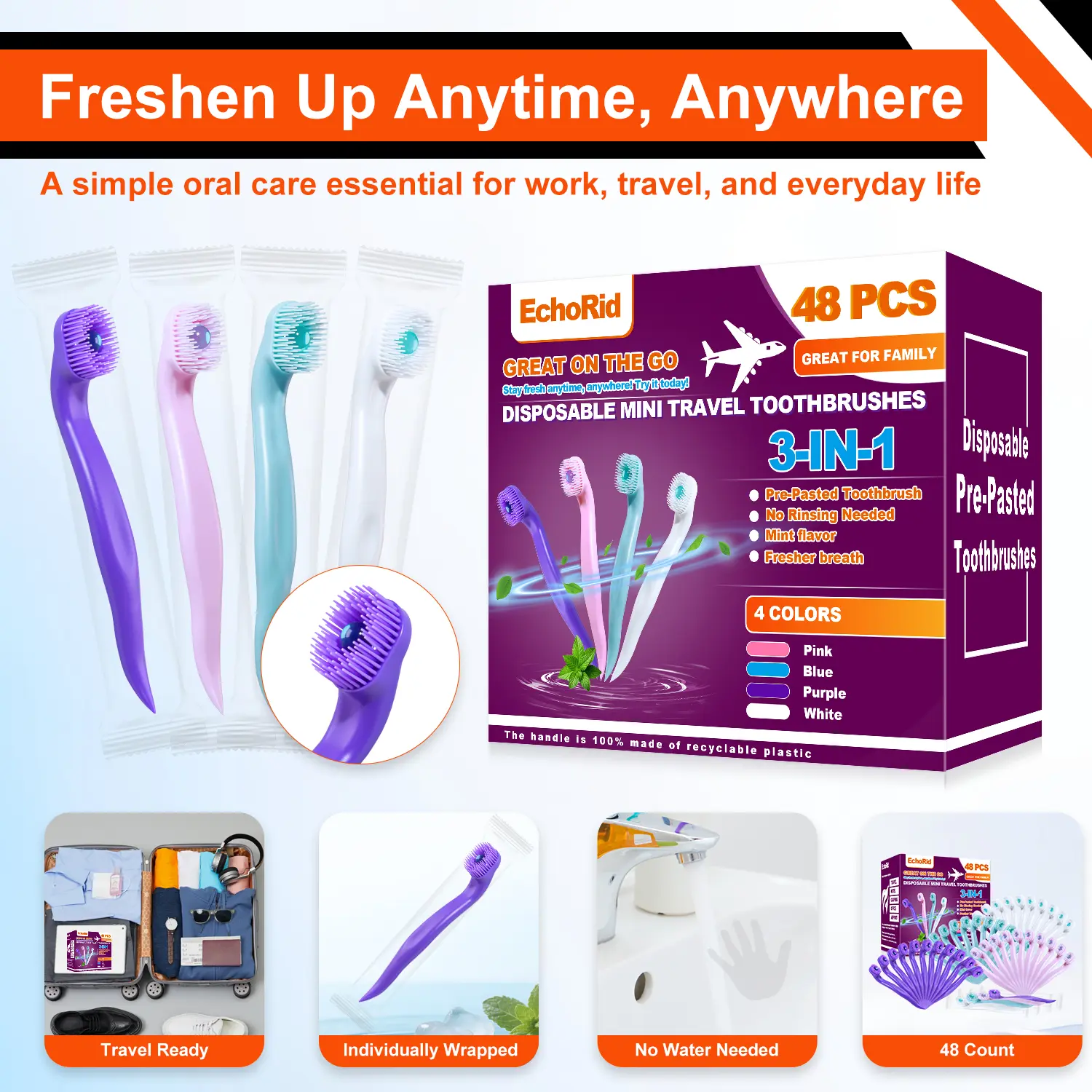 48 Count Disposable Travel Toothbrushes 3-in-1 Pre-Pasted Mini Toothbrush with Toothpick & Floss, No Water Needed, Individually Wrapped Ready-to-Go Oral Care Kit, Mint Flavor Fresh Breath On the Go, Perfect for Travel, Work, Camping, Dates & Family Use