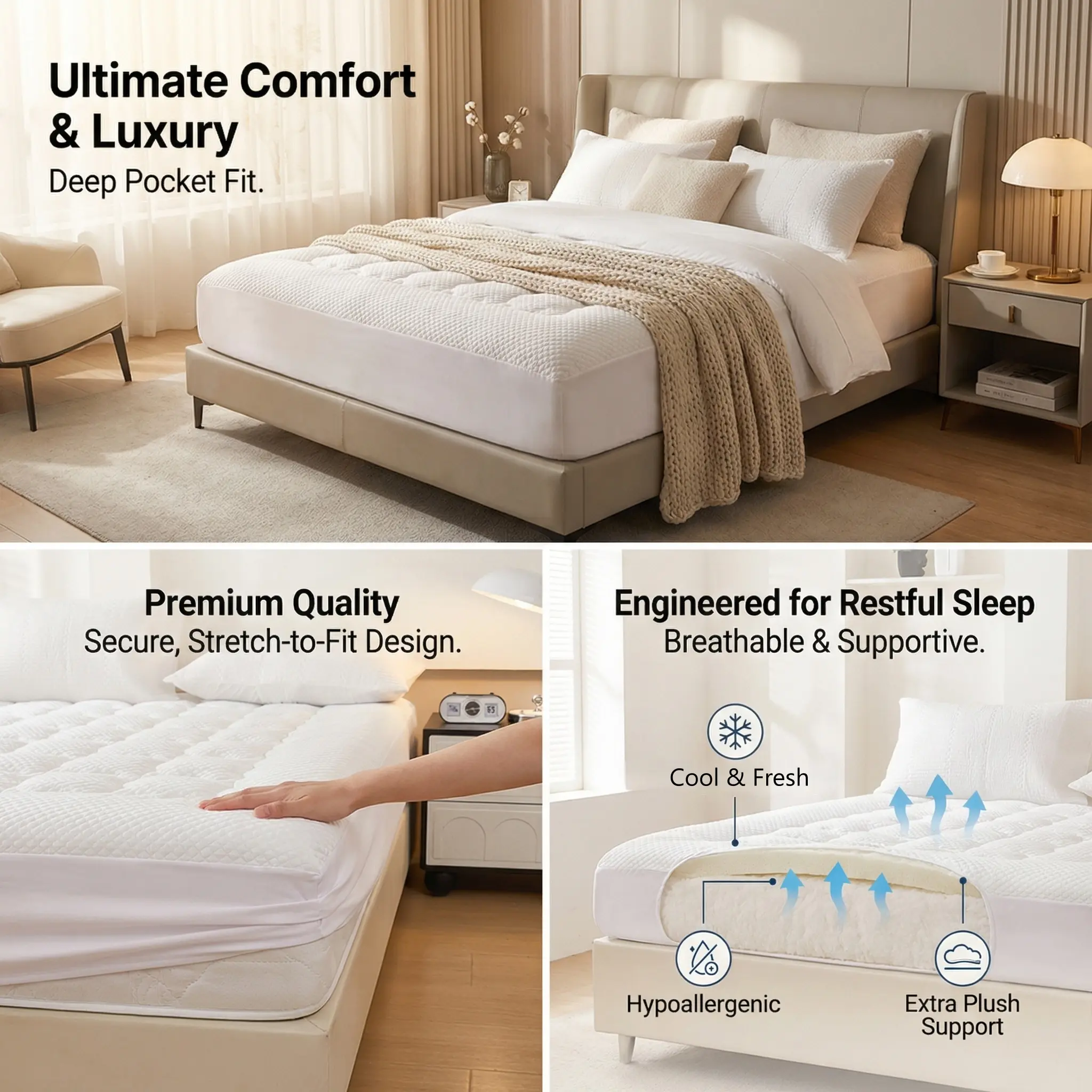 Indulge in ultimate comfort and luxury with our premium Mattress Topper. Designed to transform your ordinary bed into a luxurious retreat, this topper combines superior softness with practical performance, making it a must-have for every bedroom.