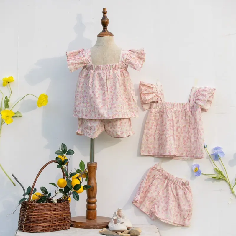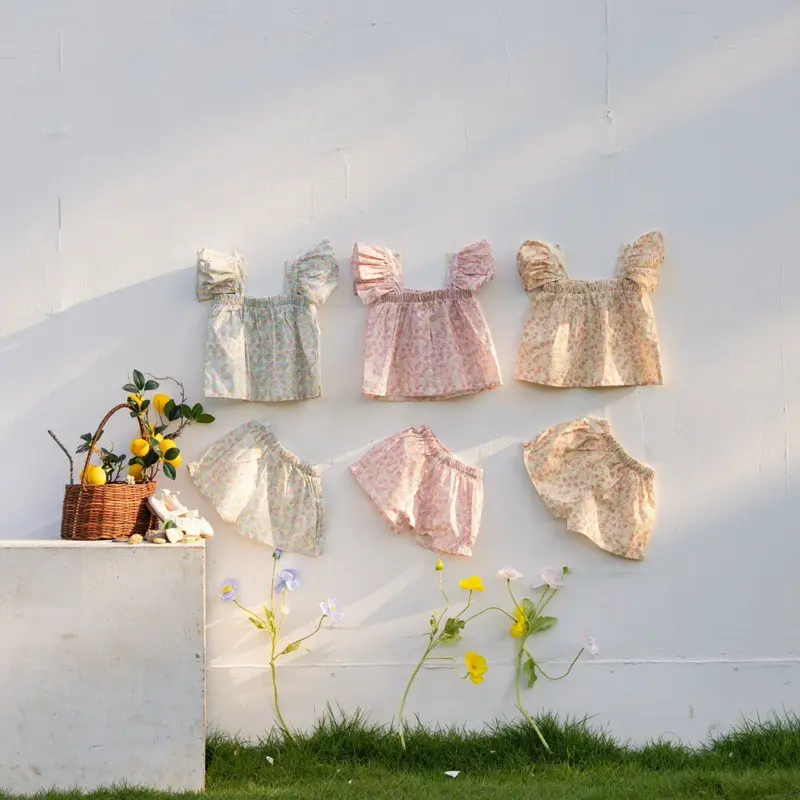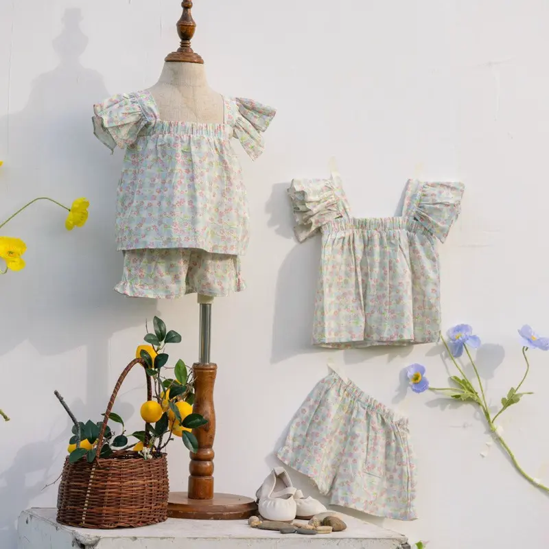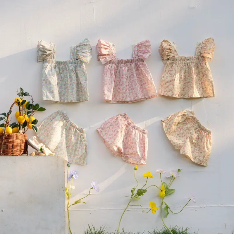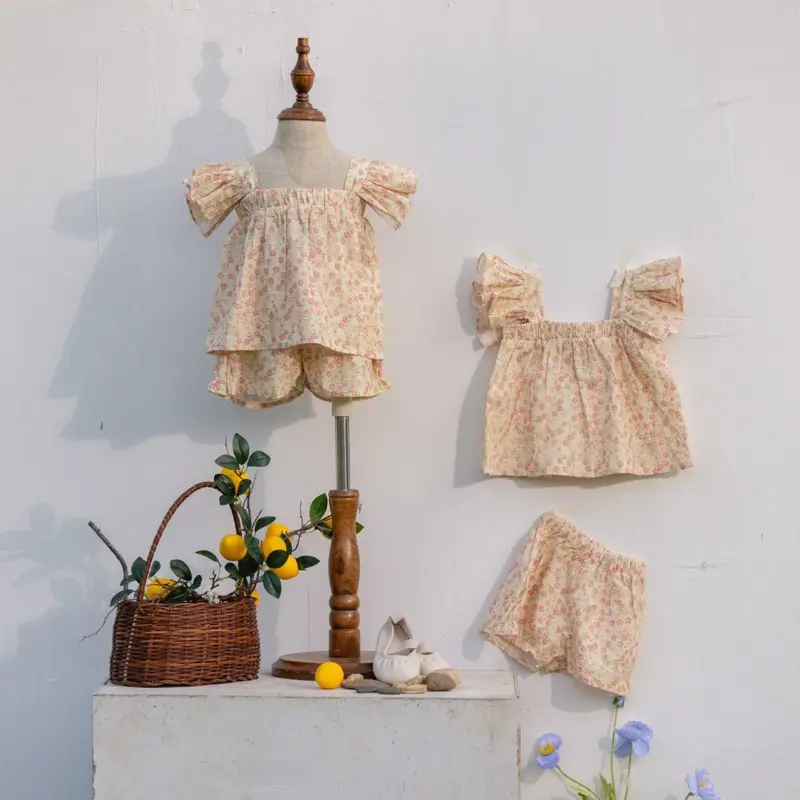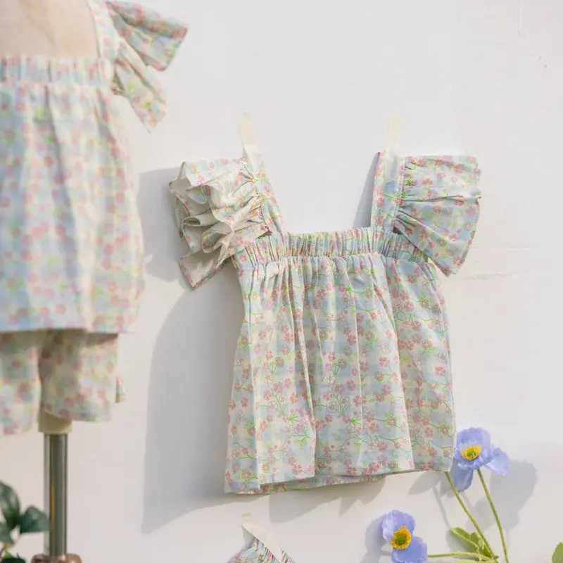 ✨ Elevate your summer style with this charming two-piece outfit. The set includes a lightweight cotton flutter sleeve top and matching shorts. Perfect for a cottagecore aesthetic, this outfit is ideal for warm days. The floral ruffle design adds a touch of vintage elegance.