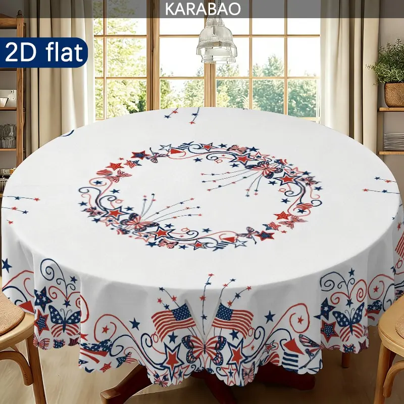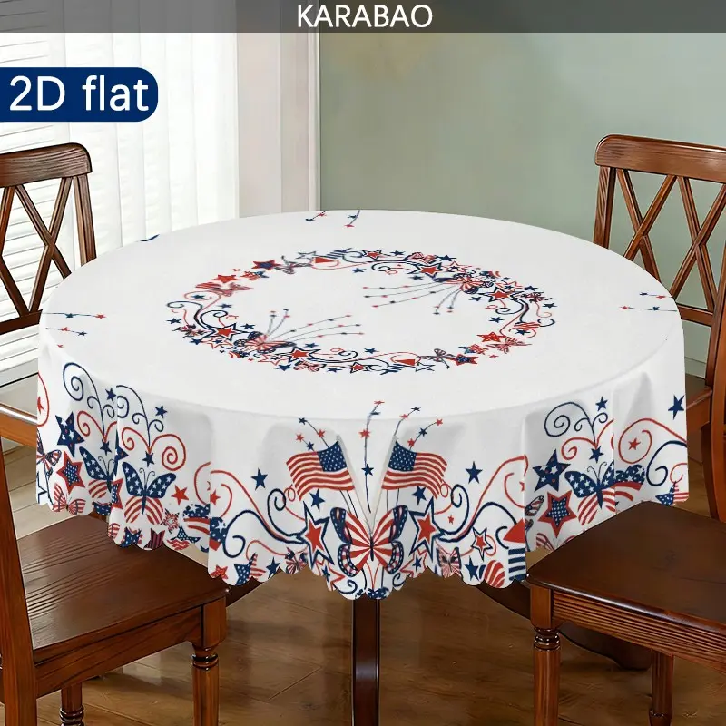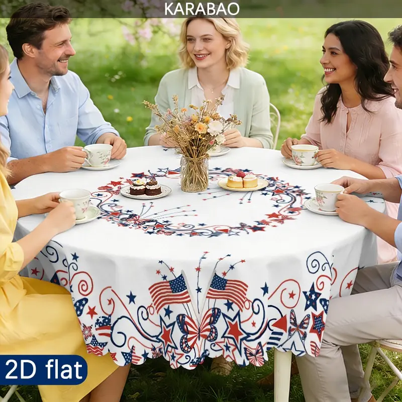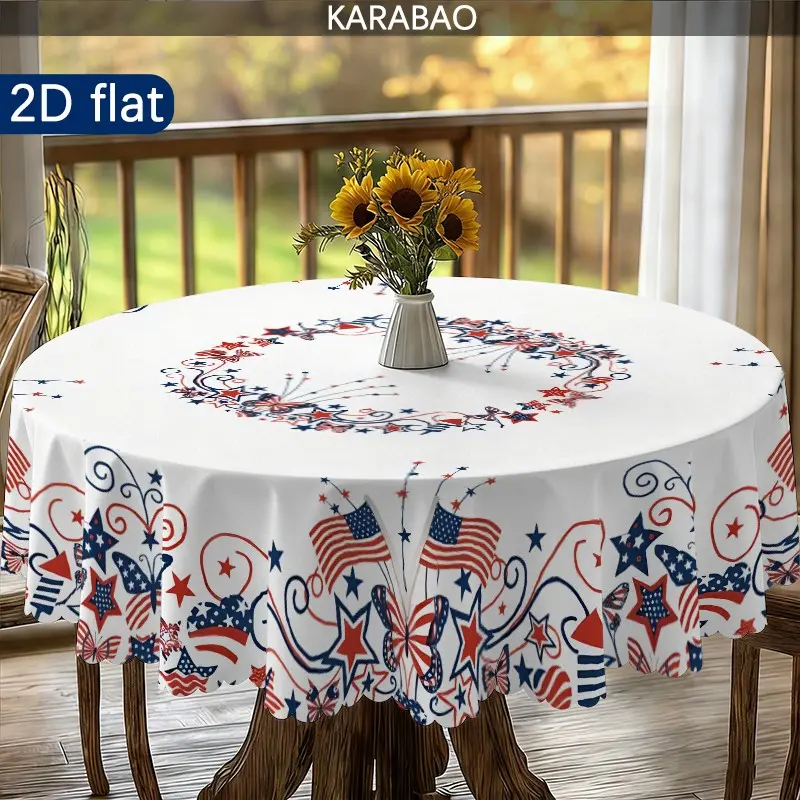 1pc American Flag Theme Round Tablecloth, Holiday Decoration Pattern, Indoor Outdoor Use, Picnic Accessory, Home Decor, Dining Setup