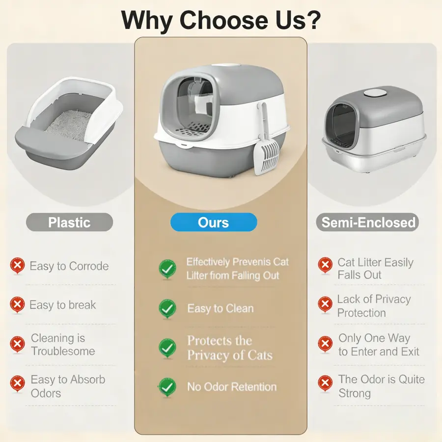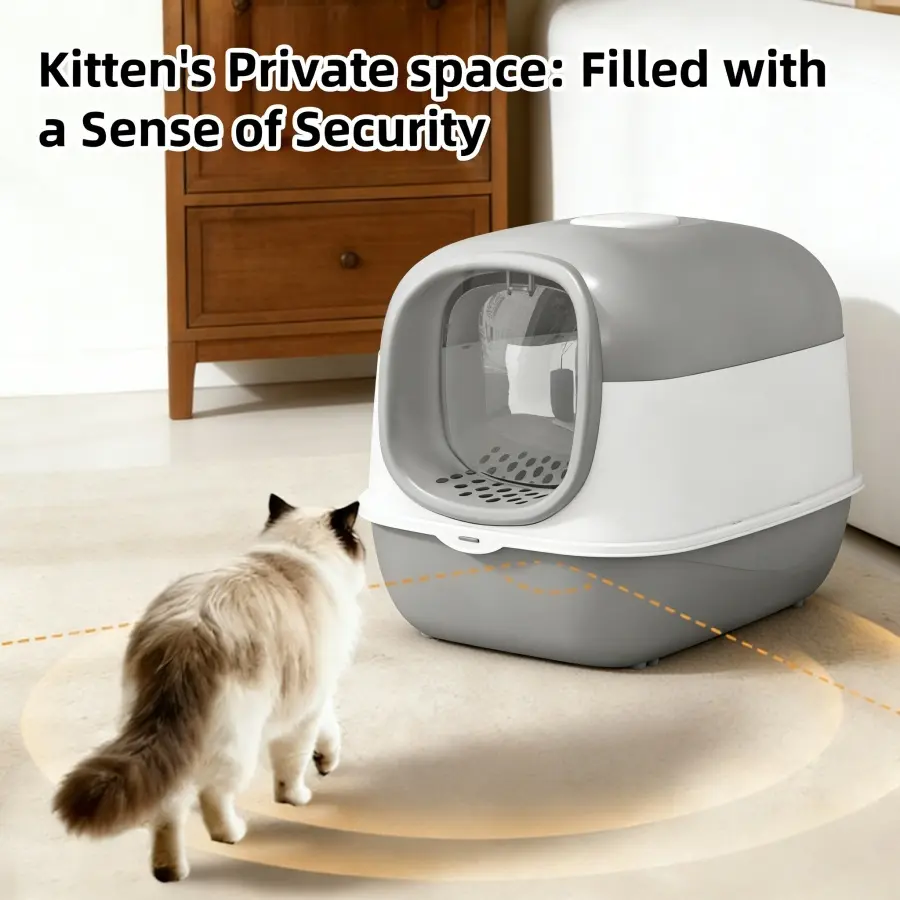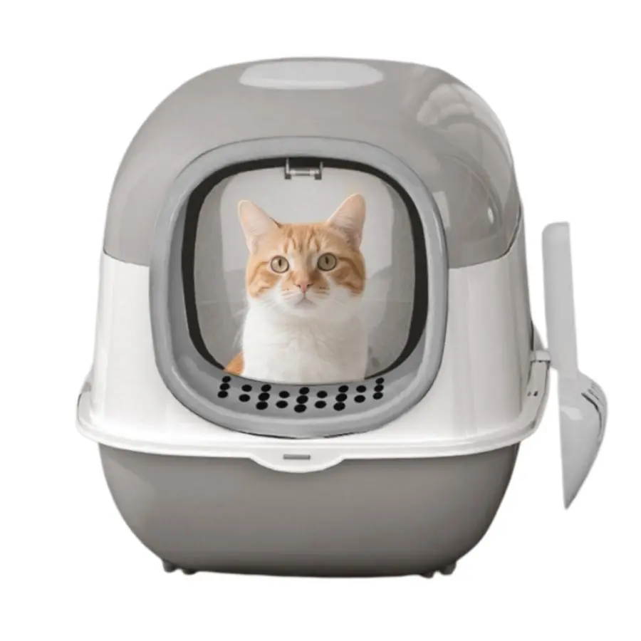 Fully enclosed design locks in odors and prevents litter scatter, keeping your home fresher. Features a wide-angle lift-up lid for effortless, thorough cleaning with no hard-to-reach spots. Hygienic protection for your cat's health. 🧼