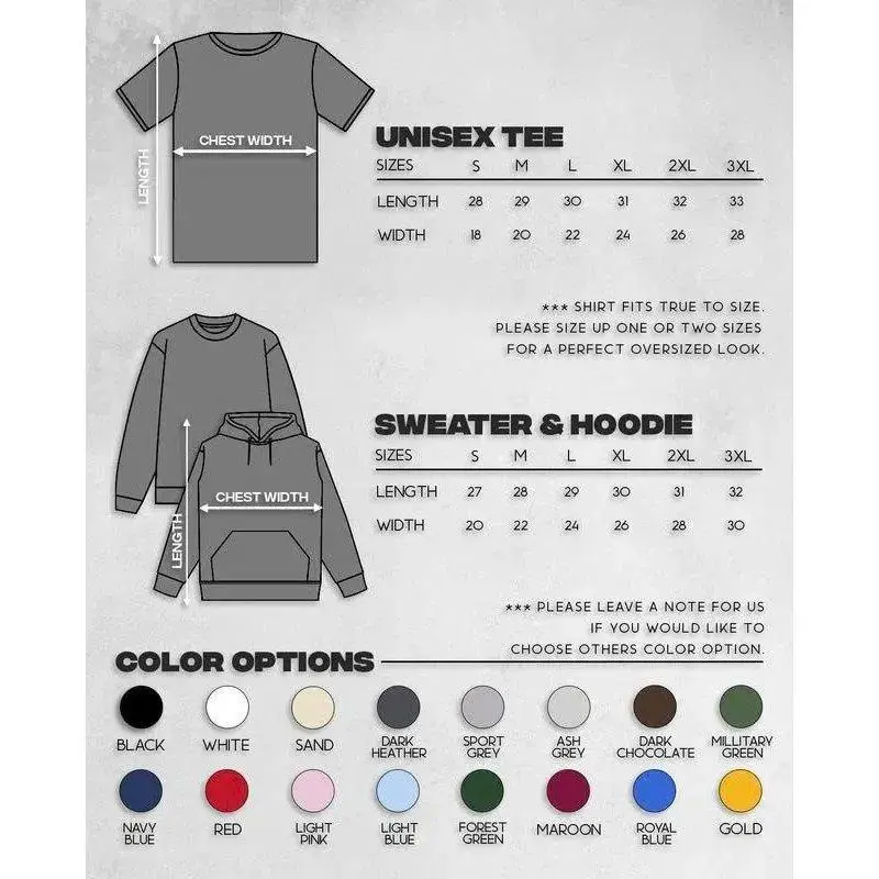 All of our shirts are printed on demand, so we do not accept returns or exchanges due to sizing. If there is any issue with the shirt itself, please message us and we will be happy to help you correct the error. PRODUCTION AND SHIPPING Production: 1-2 days Standard shipping: 3-6 business days after production time