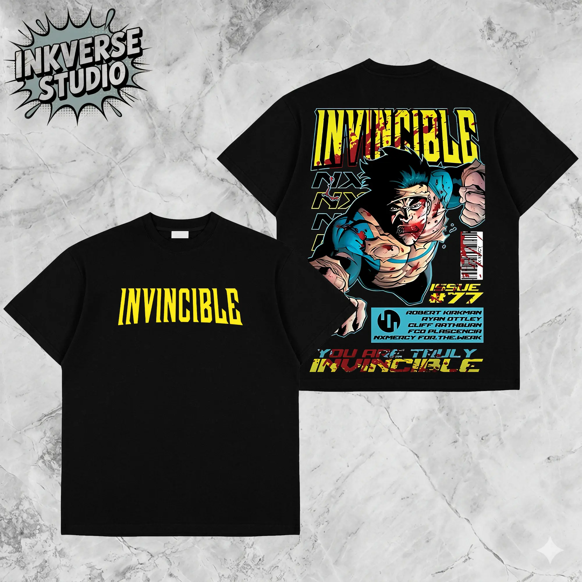 5. InkVerse Retro Invincible War Mark Grayson Graphic Tee, Invincible MCU Animated Series T Shirt, Superhero Punch Comic Design, Oversized Streetwear Unisex Tee, Vintage Bloody Comic Style, Gift for Invincible Fan, Adult Animation Merch