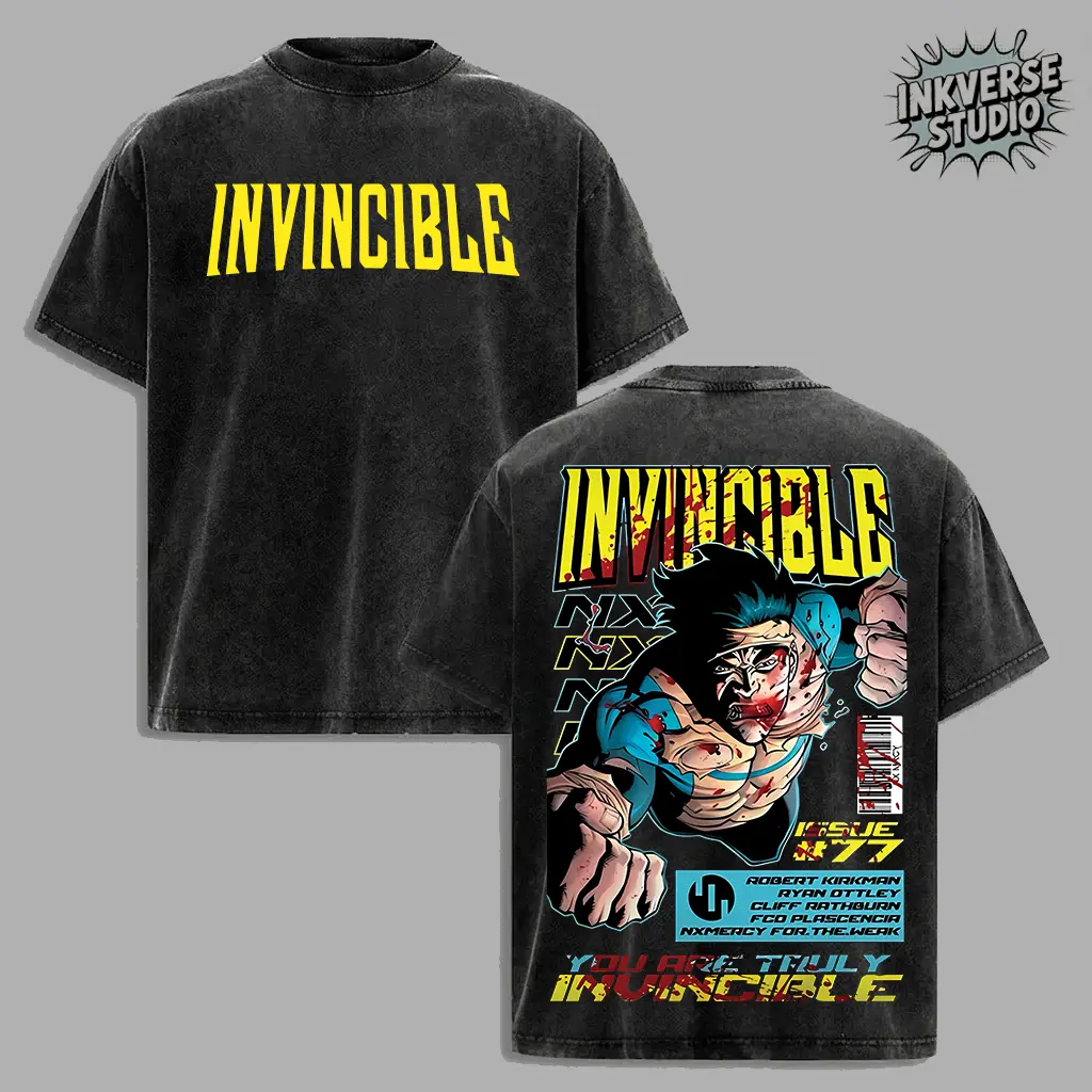 InkVerse Retro Invincible War Mark Grayson Graphic Tee, Invincible MCU Animated Series T Shirt, Superhero Punch Comic Design, Oversized Streetwear Unisex Tee, Vintage Bloody Comic Style, Gift for Invincible Fan, Adult Animation Merch