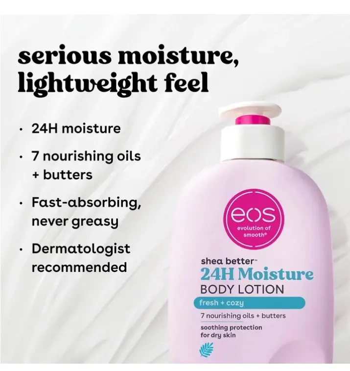 eos Shea Better Body Lotion- Fresh & Cozy, 24H Moisture for Dry Skin, 16 fl oz
