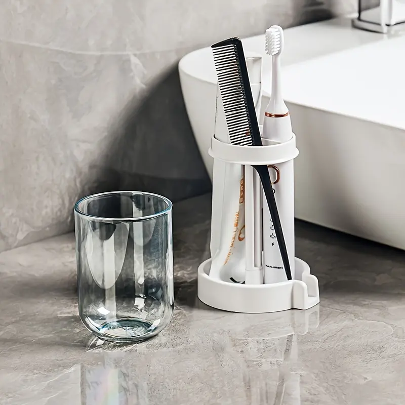 1PC Bathroom Toothbrush Cup Holder, Waterproof Toothbrush Holder, Cosmetic Organizer, Space-Saving Wall Shelf, Suitable for Sinks, Washrooms, Counters, Bathroom Organization and Storage