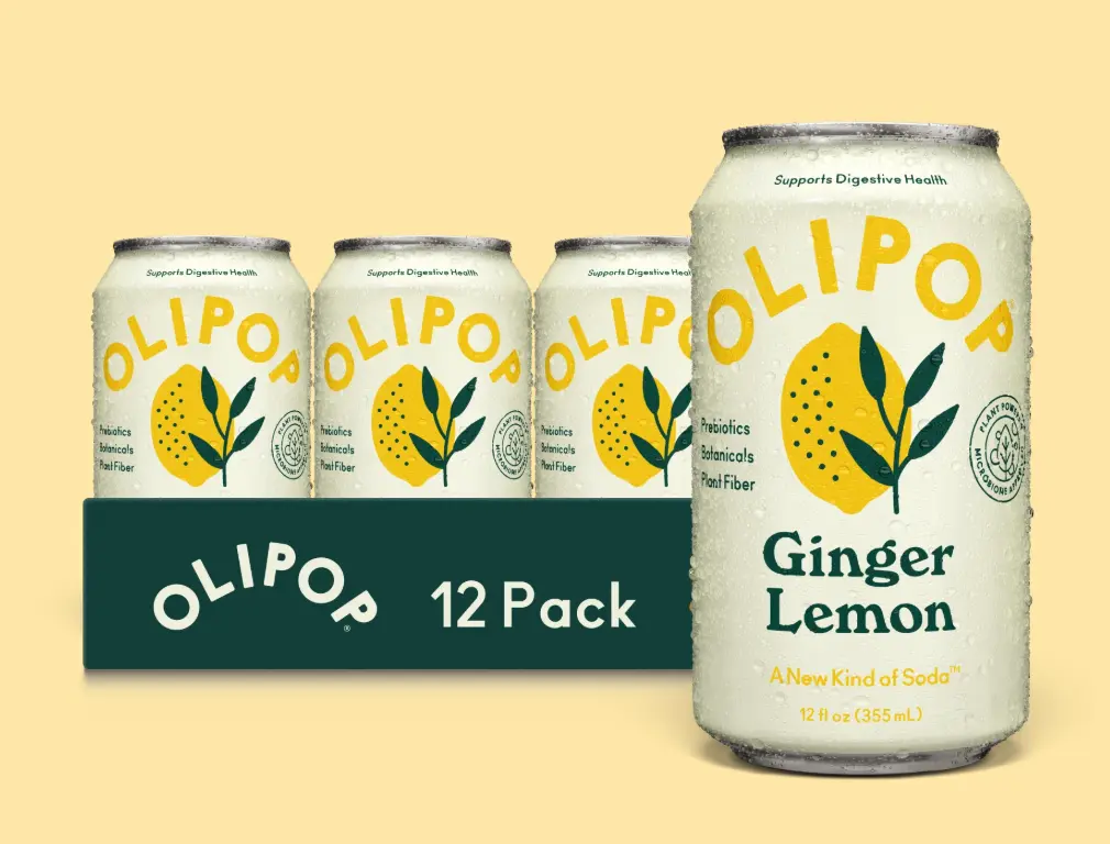OLIPOP Ginger Lemon Prebiotic Soda – Low Sugar Ginger Citrus Drink (Pack of 12)