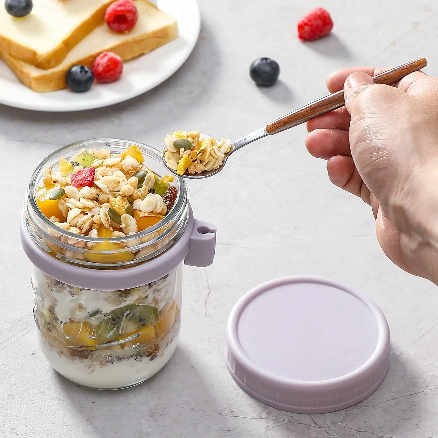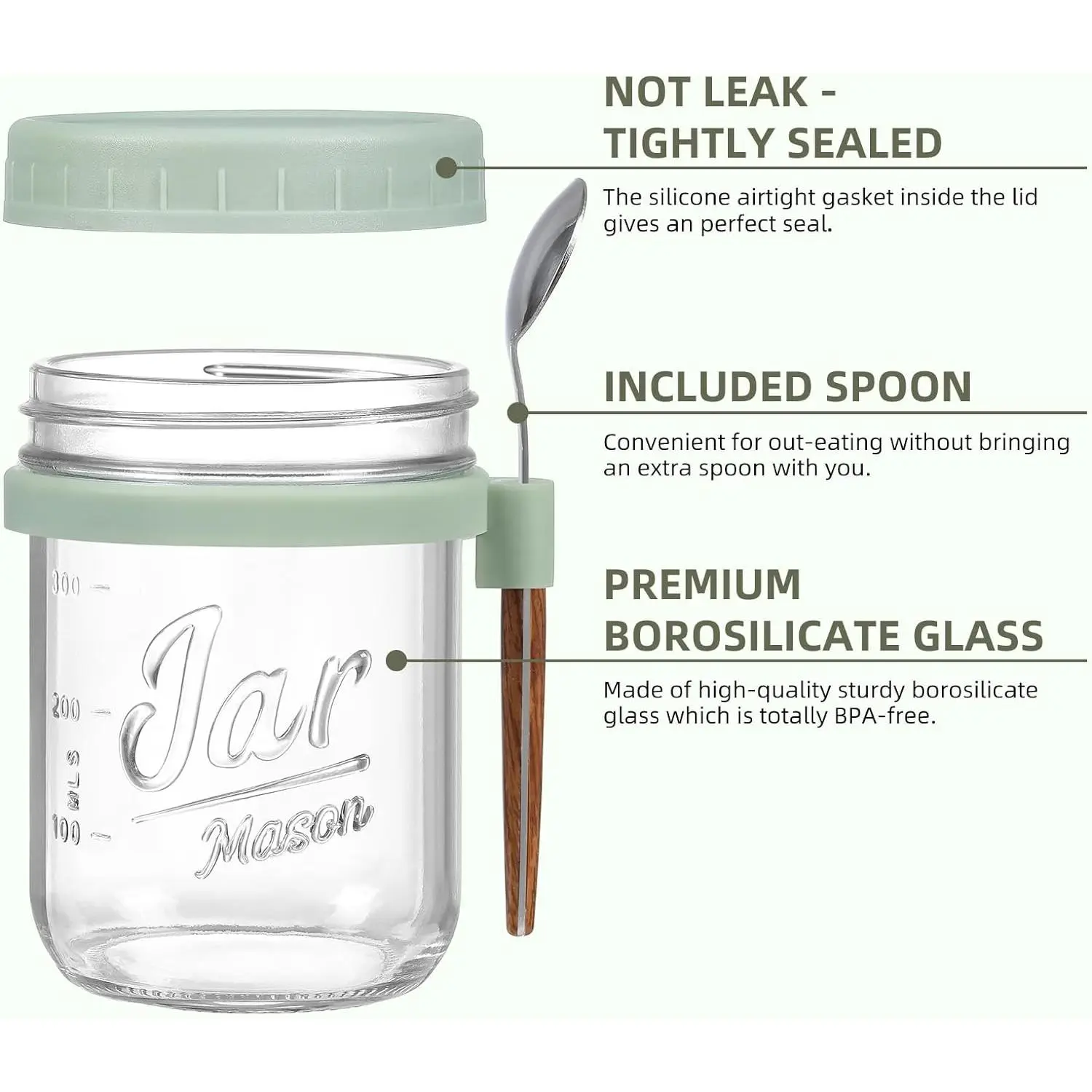 SEALING & EASY CLEANING: The airtight gasket inside the lid gives an excellent seal and completely leak resistance to keep fresh and spillage when carrying and fit nicely into lunch boxes and cupholders. And the jars have wide mouth that makes for easy putting in and taking out and also for easy cleaning.