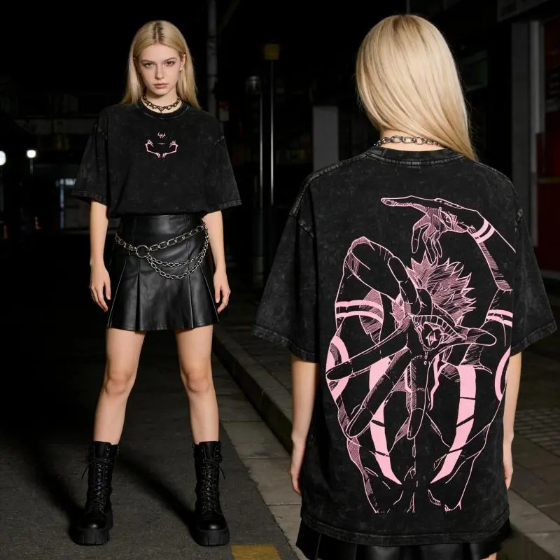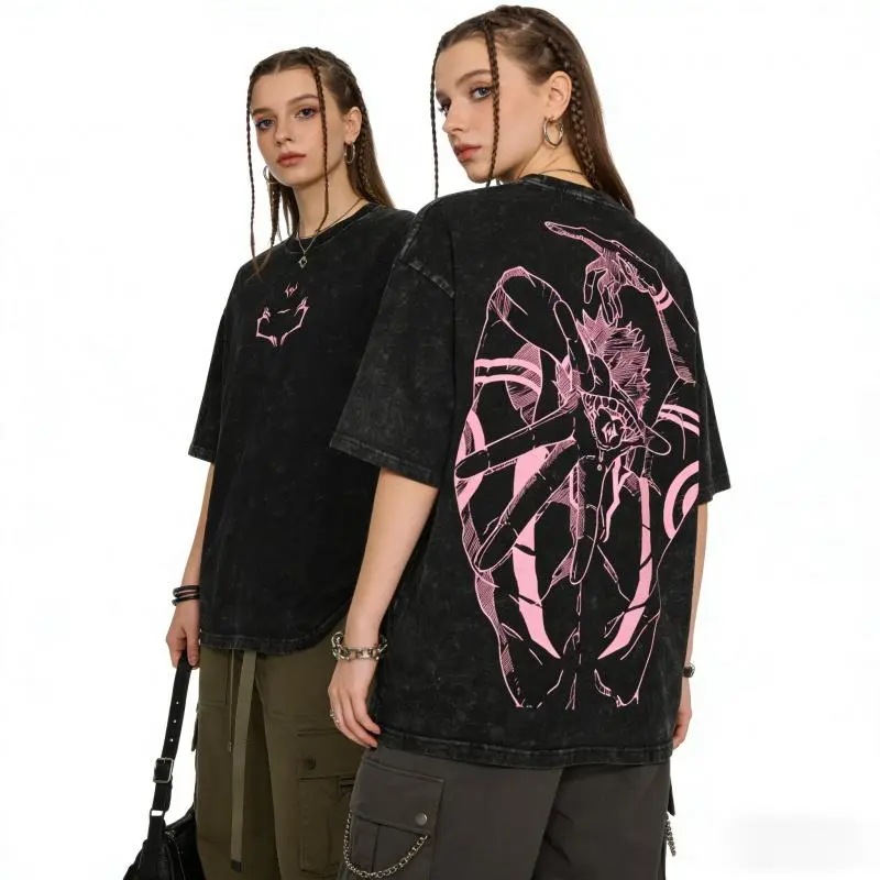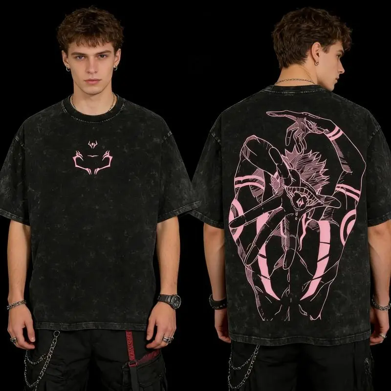 Ryomen Sukuna Vintage Unisex Oversized Anime Comic Acid Wash Cotton T-Shirt, Graphic T-Shirt, Anime Enthusiasts, Anime Merchandise Fans, Men's Clothing, Boys' Products, Valentine's Day Gift, Hoodie, Crew Neck Sweatshirt