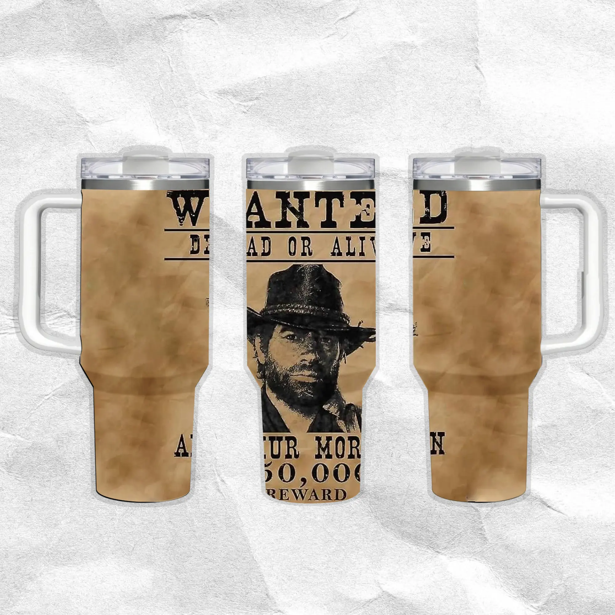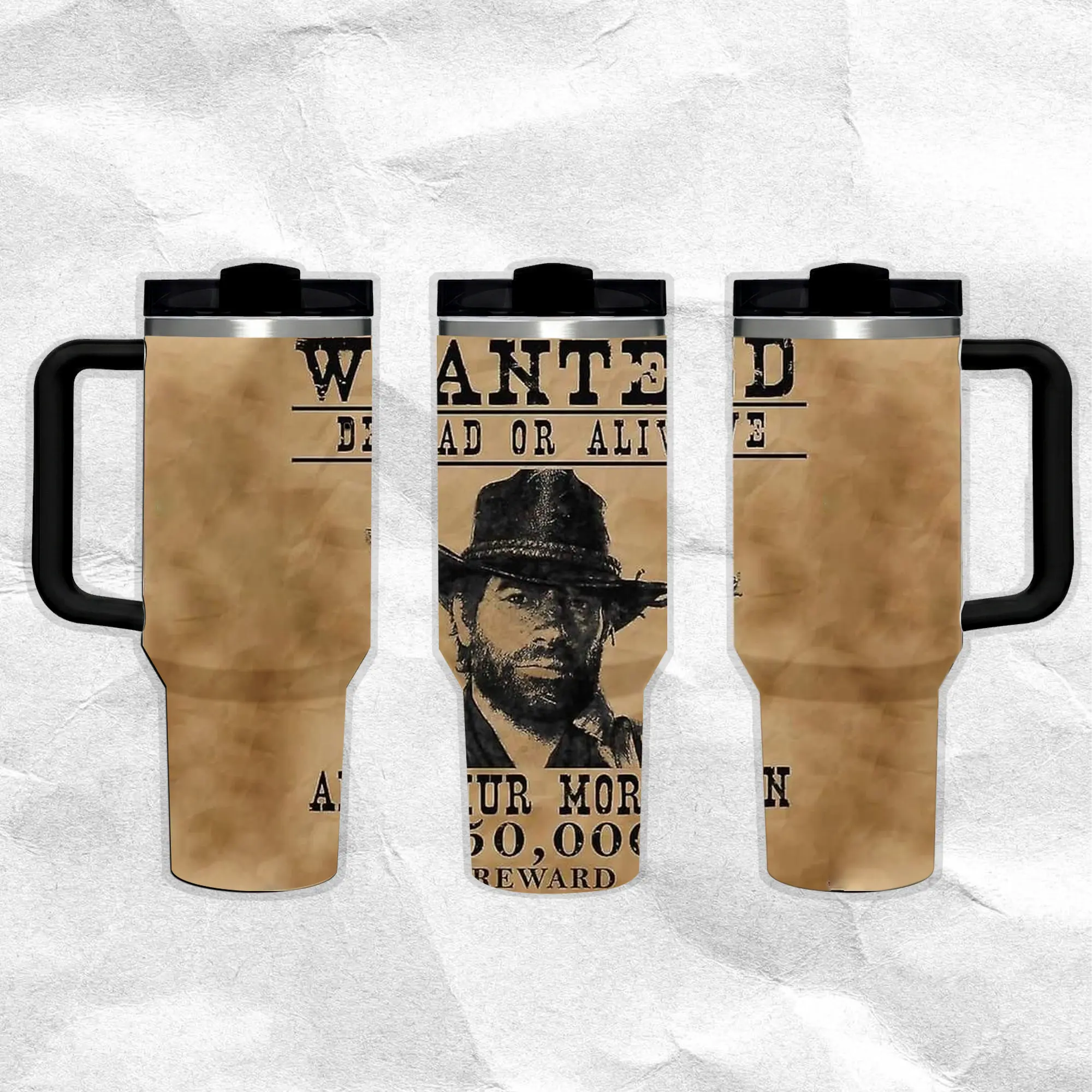 Arthur Morgan V2 - Red Dead Redemption 2 Water Bottle Stainless Steel Thermos Keeps Drinks Hot Cold 24H Portable Travel Mug Gothic Minimal Design Gift for Him Her