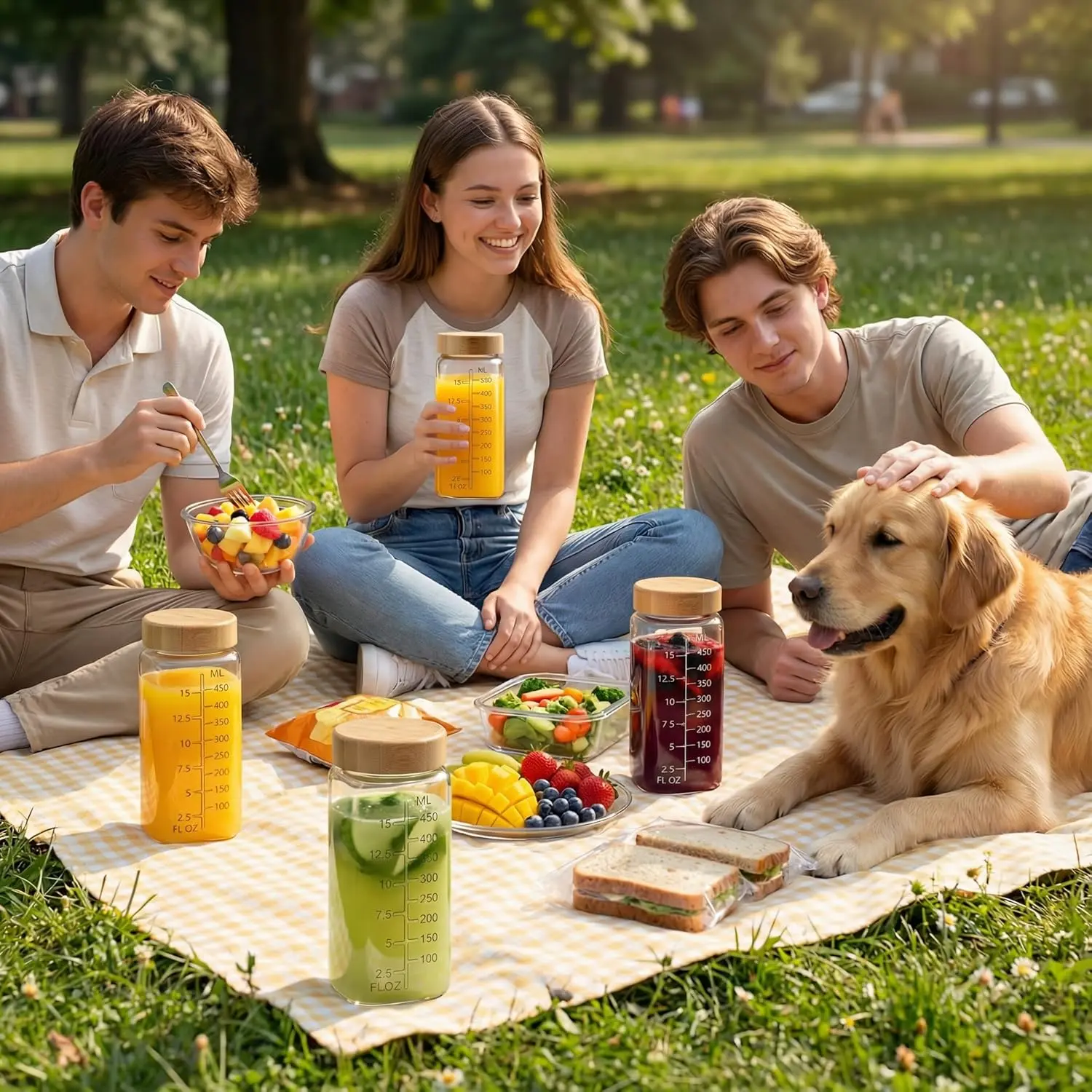 ·[ Superior Airtight Seal for Freshness & Leak-proof ]: Featuring a dual-seal design with a screw bamboo lid and silicone sealing ring, ensuring an airtight, leak-proof closure. Even with vigorous shaking and movement, our glass jars with airtight lids keep contents securely sealed, preventing spills and preserving the long-lasting freshness. perfect for juices, smoothies, homemade kombucha, iced coffee on the go, you can trust small glass jars to keep your food fresh and leak-free