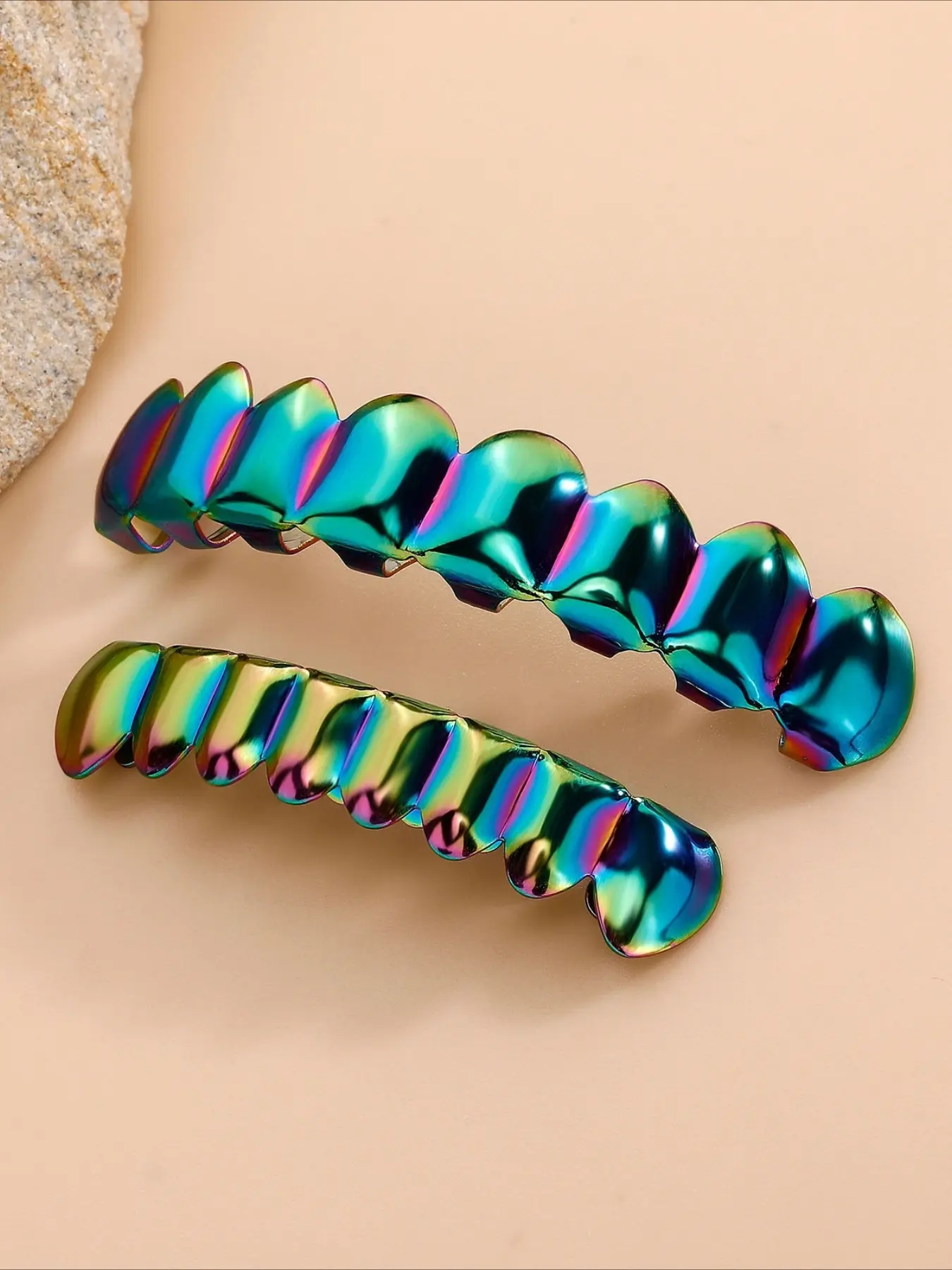 CRUSH CR Iridescent Holographic Top Bottom Teeth Grillz Set for Men Women, High-Gloss Mirror Finish, Hypoallergenic Removable Full Mouth Grillz, Perfect for Hip Hop Concerts, Music Festivals, Rave Outfits, Club Nights Cyberpunk Street Style