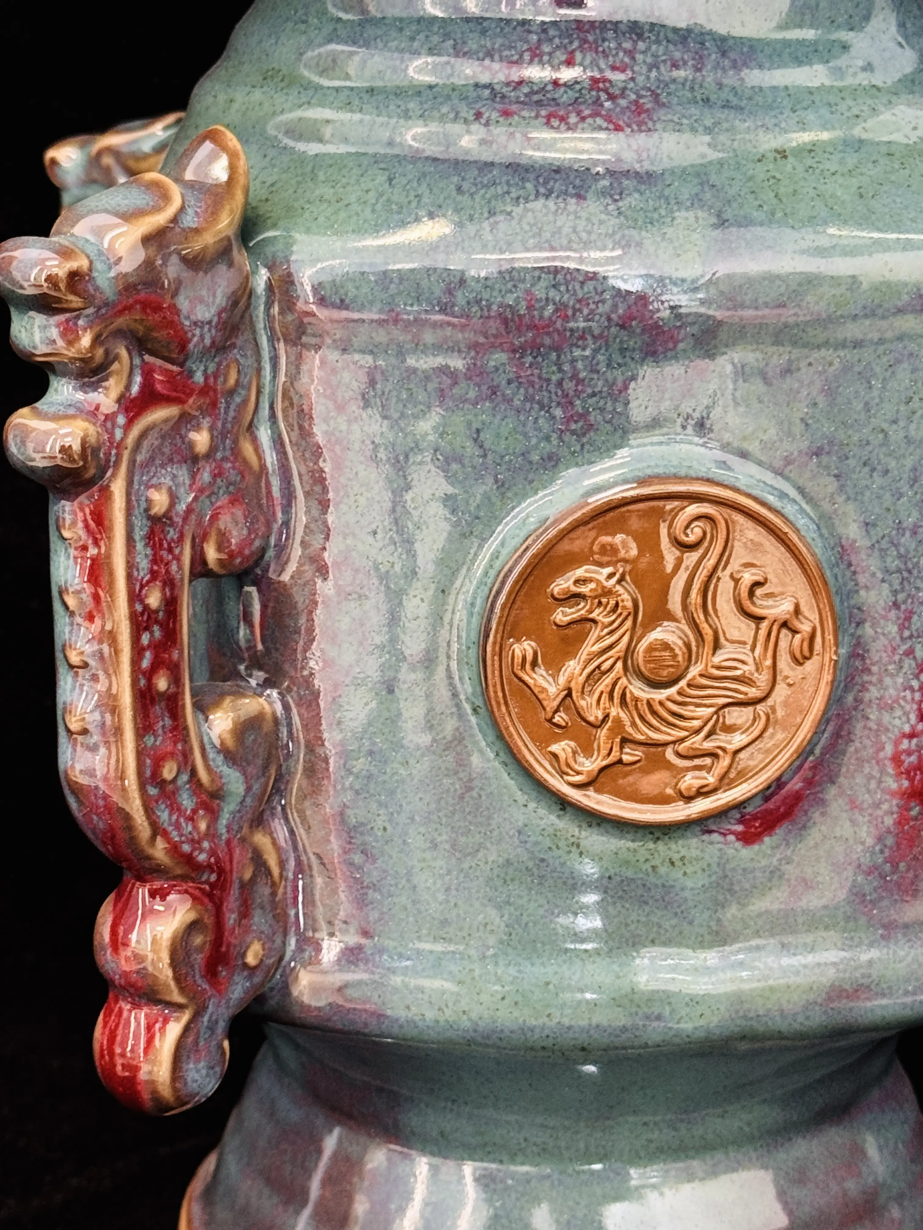 ✨ Discover the Handmade Chinese Jun Porcelain Vase, a masterpiece of Asian art. This vase features a mythical beast relief, adding a touch of mystique to any space. Perfect for home decor, it showcases vintage kiln-fired glaze, enhancing its aesthetic appeal. Each piece is unique, reflecting the artistry of traditional craftsmanship.