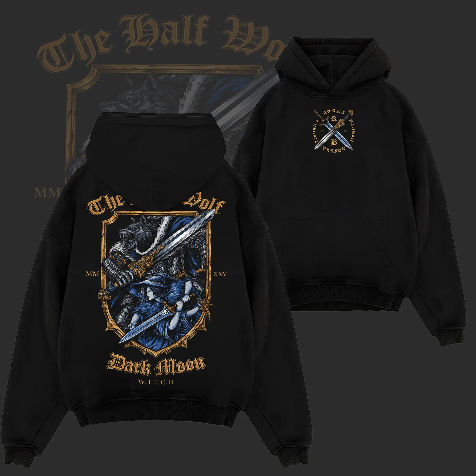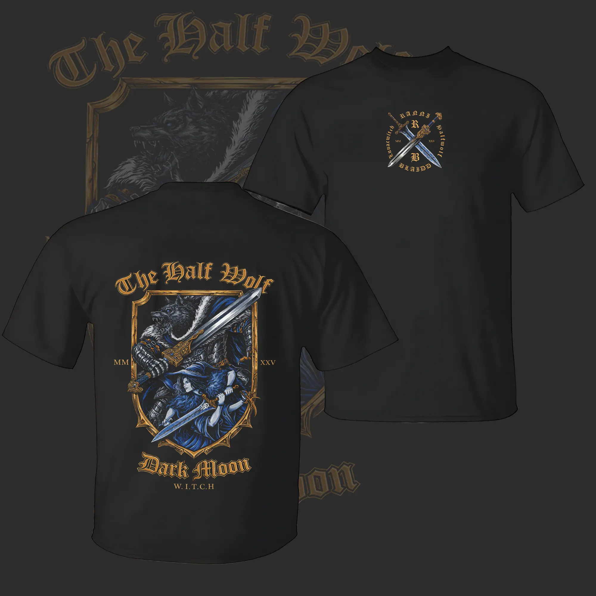 Vintage "BLAIDD x RANNI" - Elden Ring Game Edition Double Printed Oversize Lightweight Acid Washed Tee - Hoodie, Elden Ring Fans, RPG Game Graphic, Streetwear Unisex Oversize Gift for Fans, Summer Outfits, Gifft For Him Her