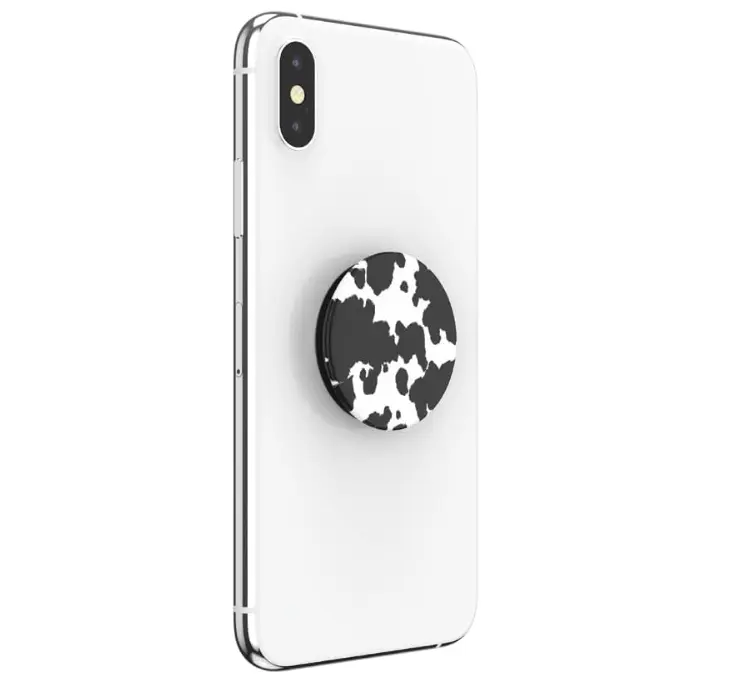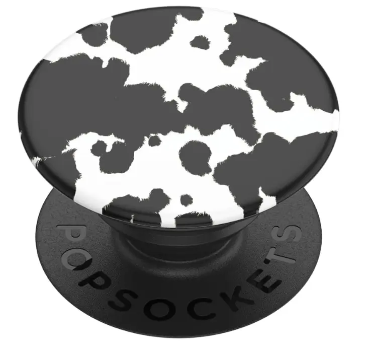 This PopSockets product combines functionality with style. The cow print design makes it a standout accessory. Ideal for those who want both utility and a touch of personality in their tech gear.