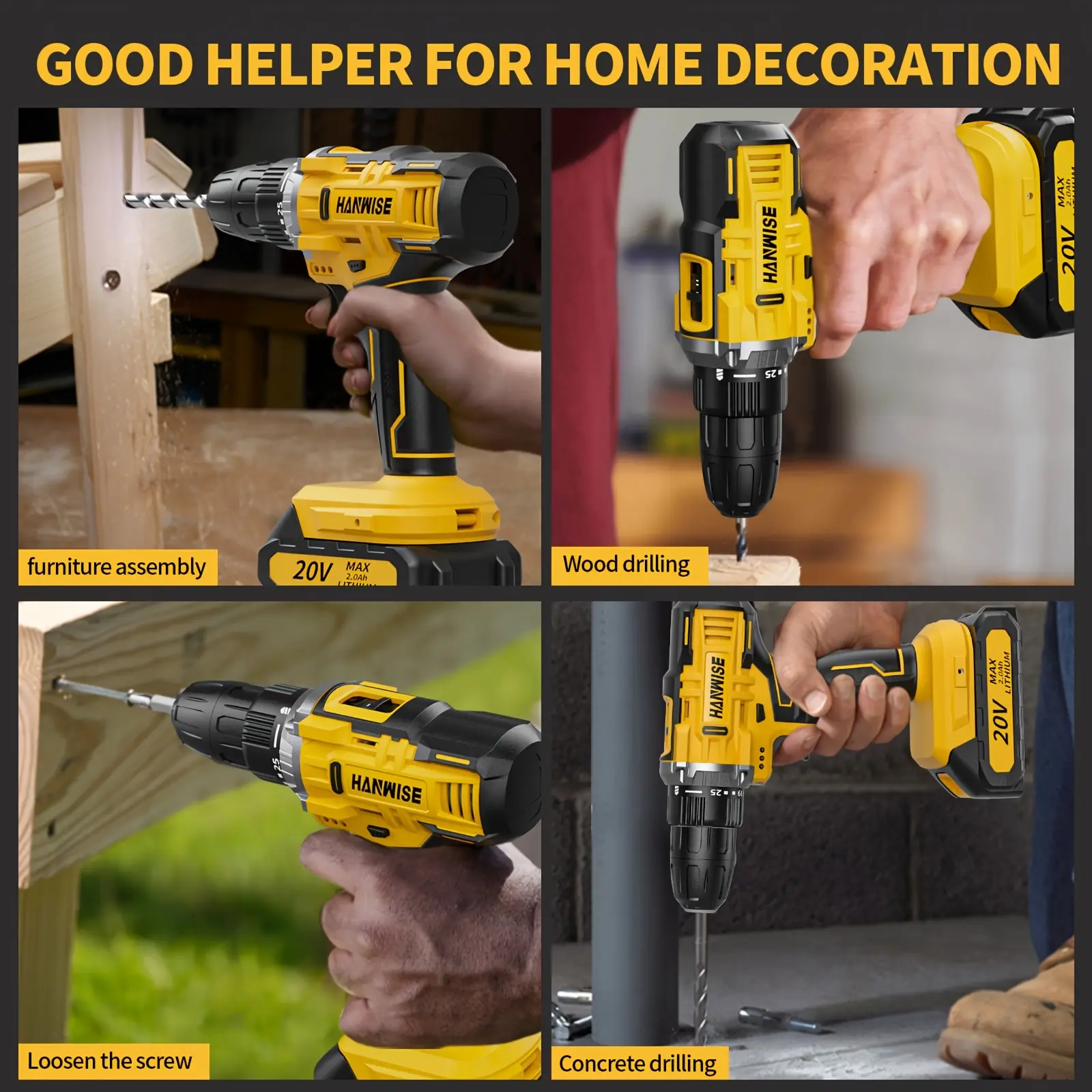Wireless Lithium Drill Set With 20V/12V Options, Featuring LED Light And 25+1 Adjustable Torque Settings. Essential For Home RepairsAnd DIY Projects, An Excellent Choice As A Gift., Construction Work, Household Maintenance, Power Drill Set.