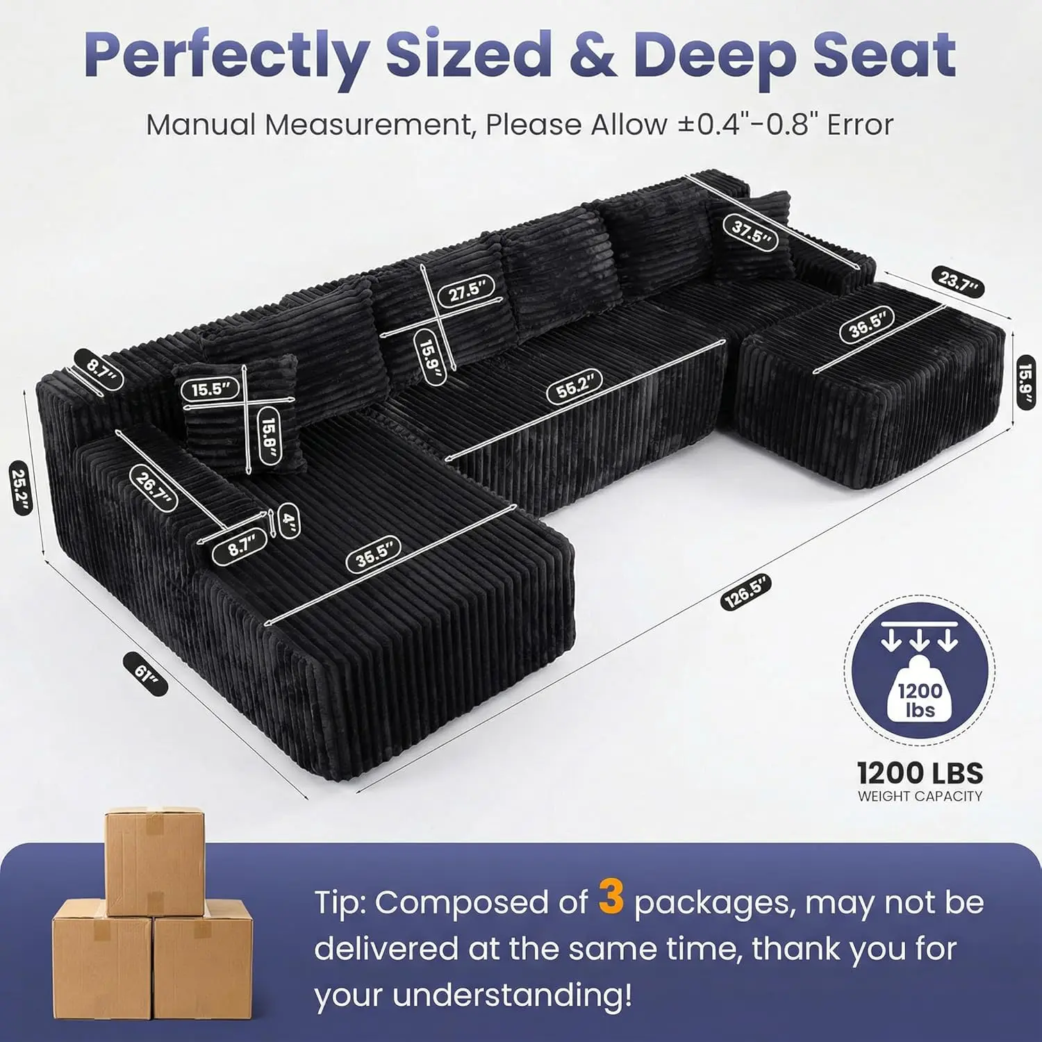 ✨ Transform your living room with the Winzoo Couch 126" Cloud Sectional. This oversized 6-seat convertible modular sofa bed offers versatile configurations. Choose from a long couch, modular sofa, oversized sofa, or sofa bed. Each setup provides comfort and style. The plush corduroy material ensures a cozy feel. The U-shaped boneless design adds a modern touch. Ideal for various living room setups.