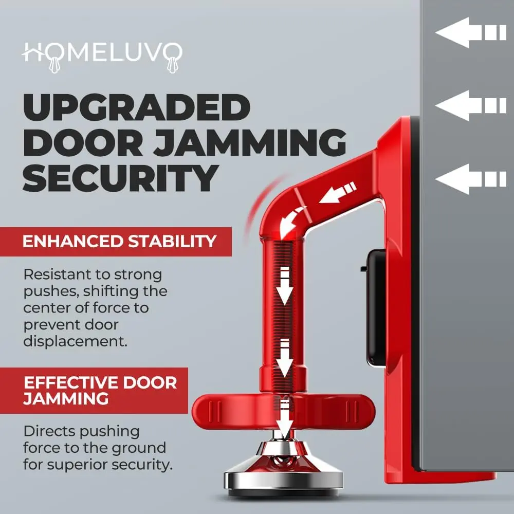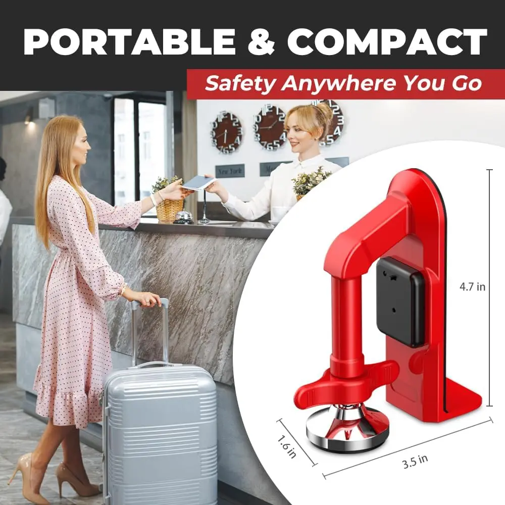 Portable Alarm Door Stopper - Strong Security Anti Theft Smart Lock for Travel Safety - Front Door Jammer Device for Apartment Hotel Home - No Drill Bottom Door Floor Blocker Brace with Siren