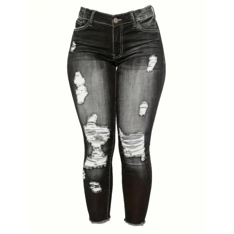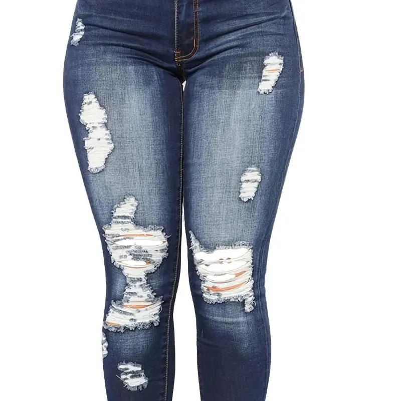 Stretchy Women's Skinny Jeans, Butt Lifting Distressed Denim Pants with Pockets and Ripped Hole Trousers Womenswear Bottom Vintage Polyester Fabric Slim