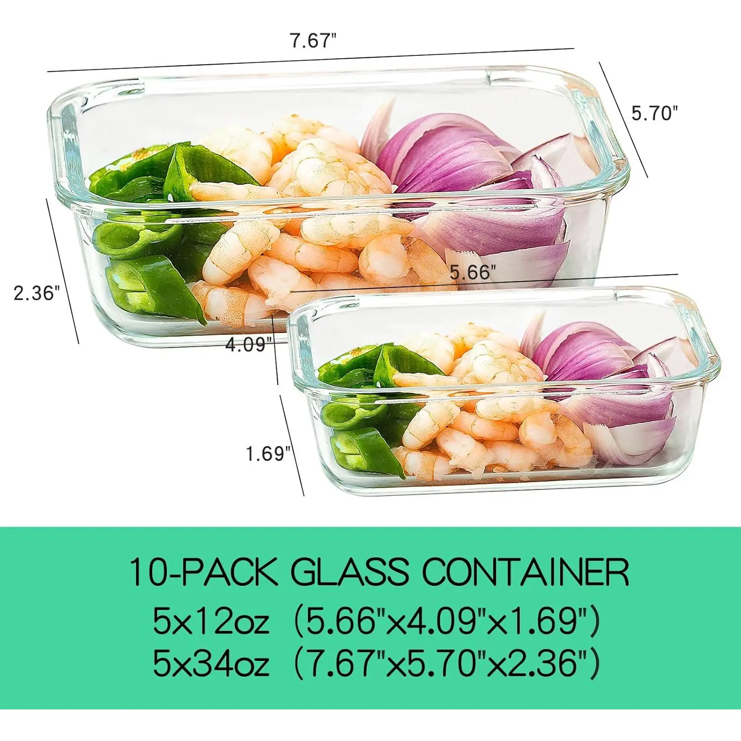10 Pack Glass Food Storage Containers with Lids Leakproof, Airtight Glass Meal Prep Containers For Lunch, On The Go, Leftover, Dishwasher Safe