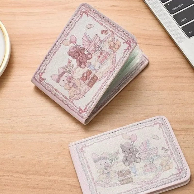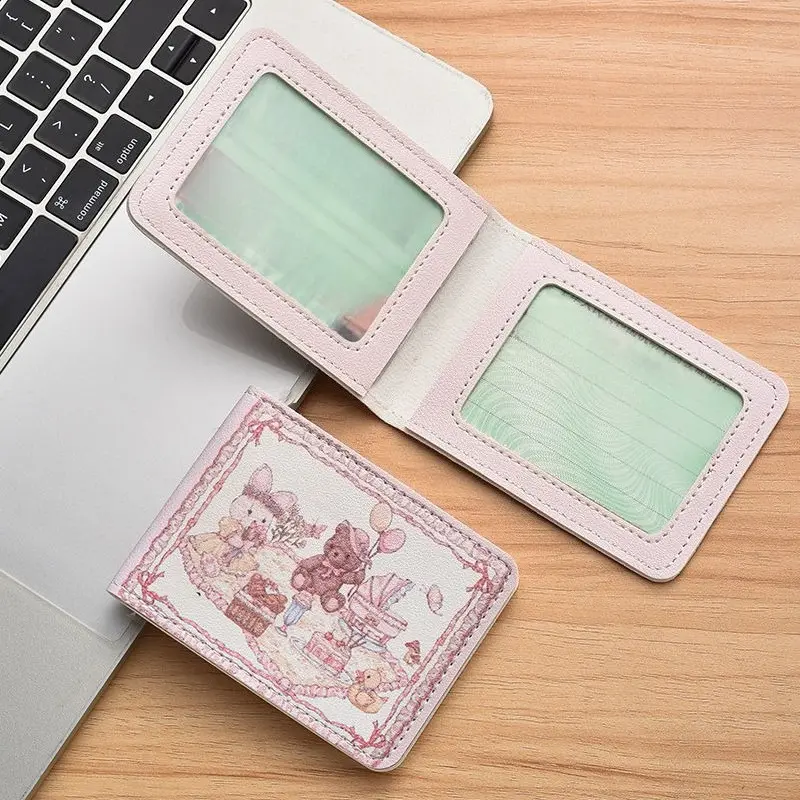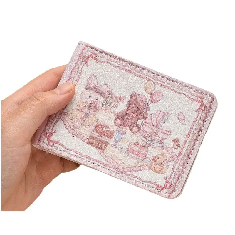 Cute Pink Bunny Bear Driver License Holder Cartoon Card Wallet Kawaii ID Card Case with Lace Design Car Document Organizer Credit Card Storage Cute Car Accessories Gift for Girls