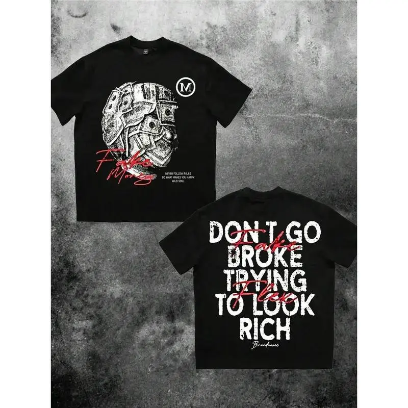 - the ultimate piece for anyone who lives unapologetically and stays true to their grind.Featuring a gritty, money-mask graphic on the front paired with the iconic quote on the back, this black tee blends raw urban energy with a powerful message about staying authentic over fake flexes.Crafted from premium, heavyweight cotton, it’s built for comfort, durability, and street-ready style that turns heads.