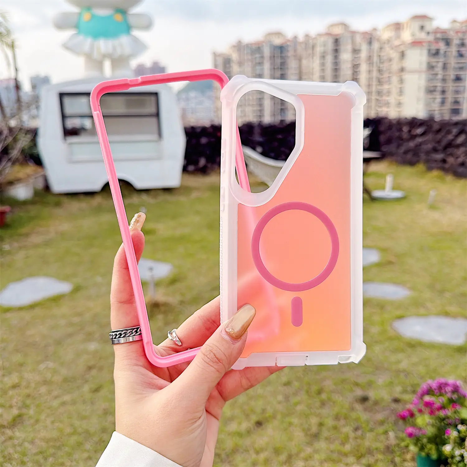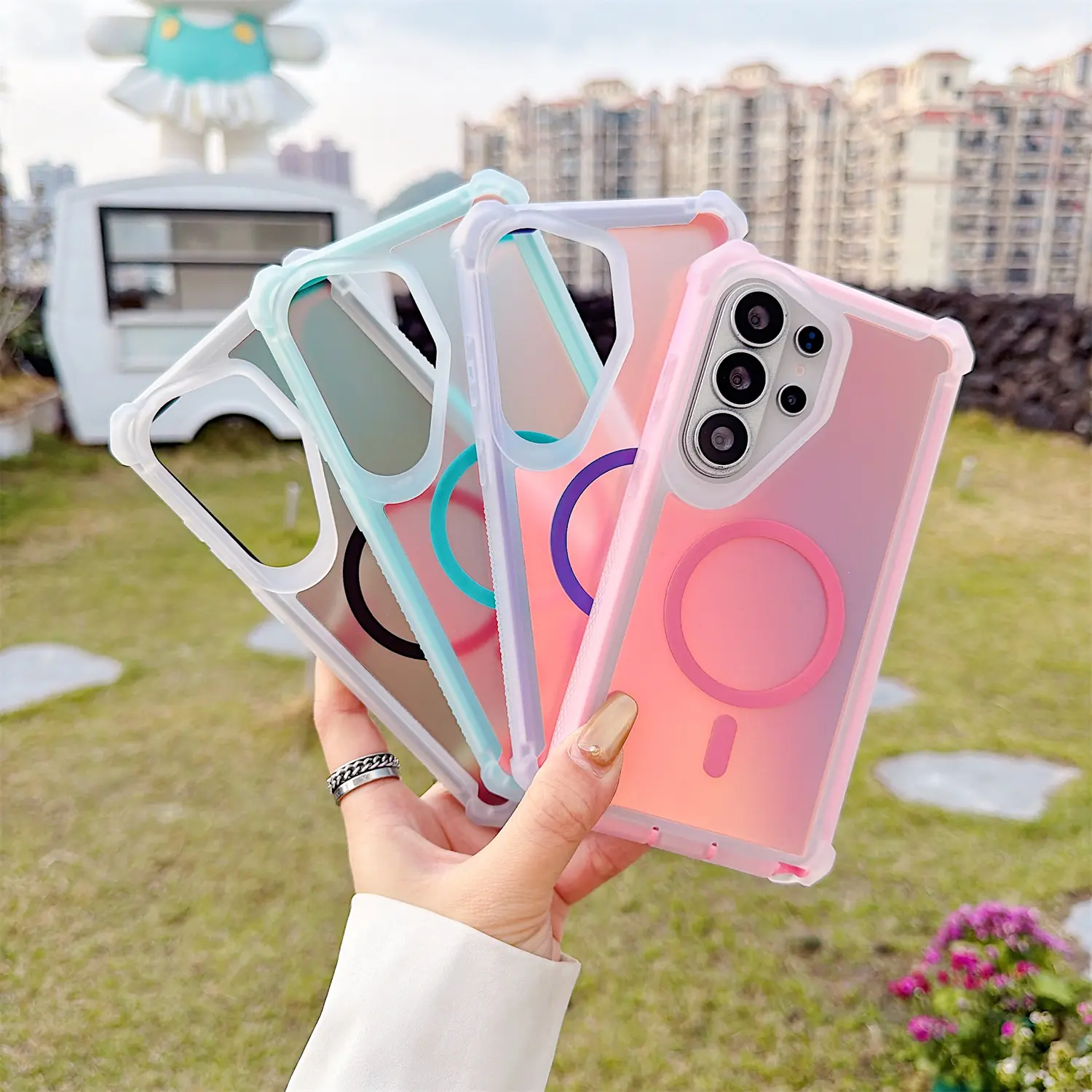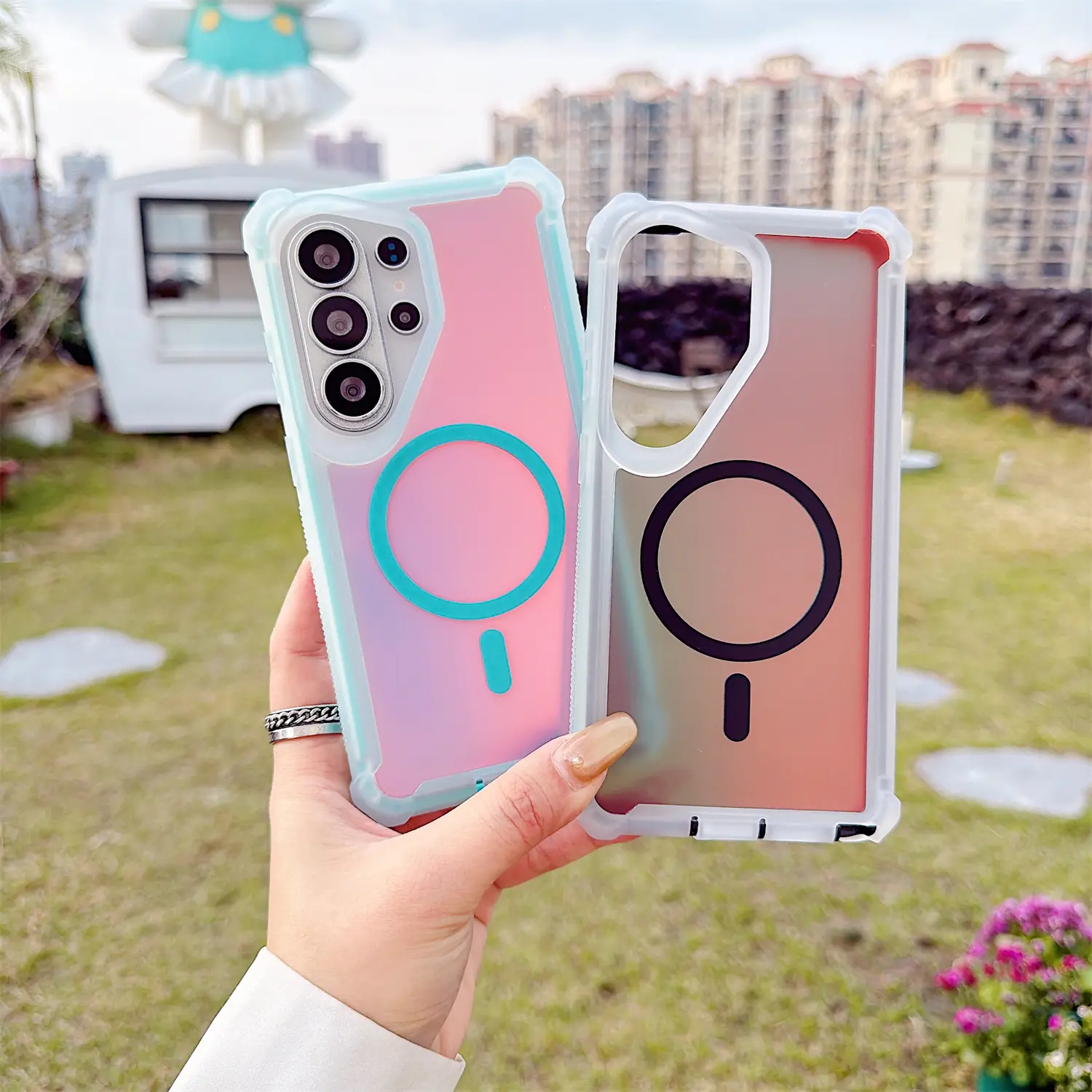 【Skin-Friendly Backplane】The back of the case is crafted with Translucent Fluorescent Laser, which feels smooth and non-slip in your hand. Unlike glossy surfaces that attract fingerprints and smudges, this matte texture stays clean with minimal wiping, while its soft tactile sensation enhances holding comfort for long periods.