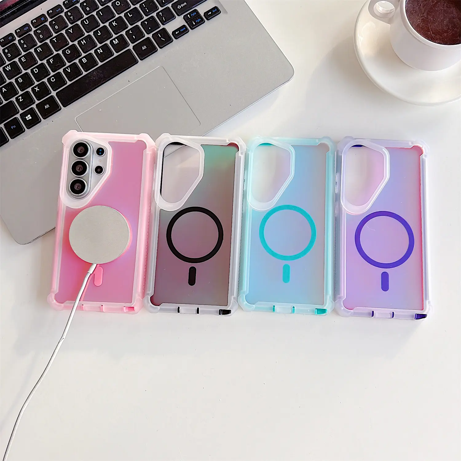 Iridescent Laser Armor Case For Samsung Galaxy S25 S24 S23 S22 ULTRA [Compatible with MagSafe] Wireless Charging Dual Layer Protection Cover