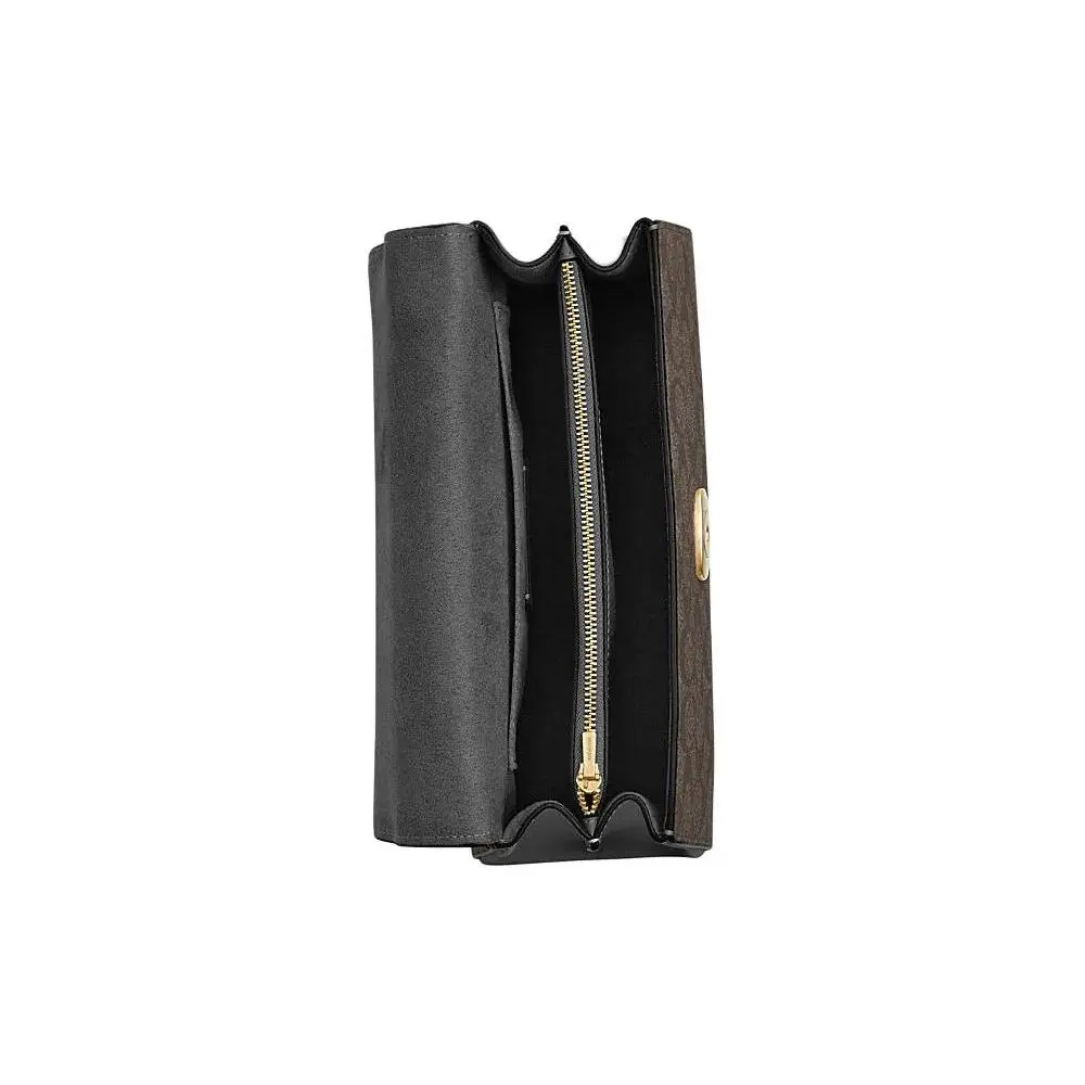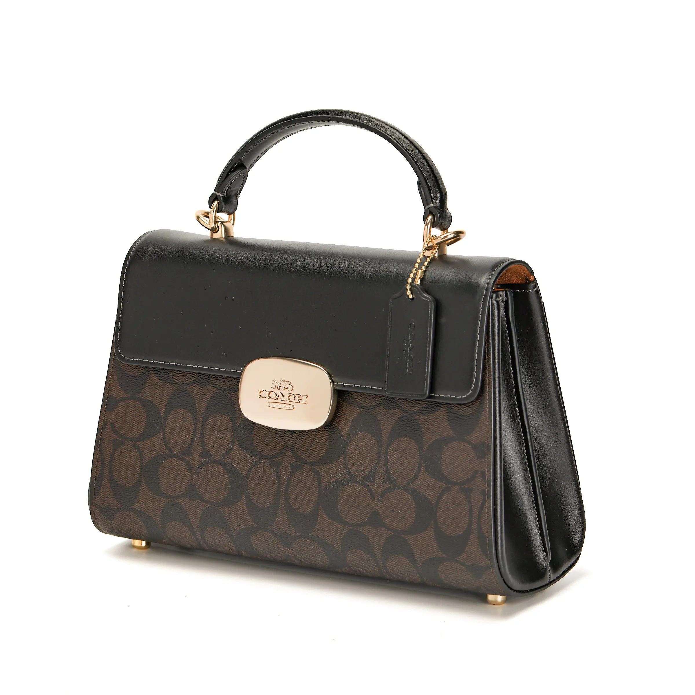 ·Signature COACH classic monogram canvas with polished brass-tone oval hardware