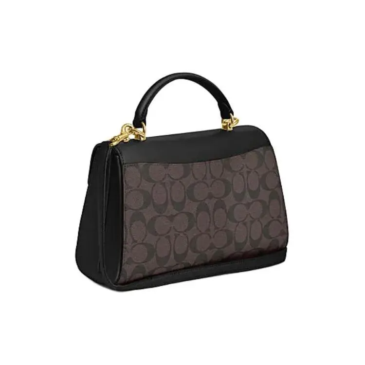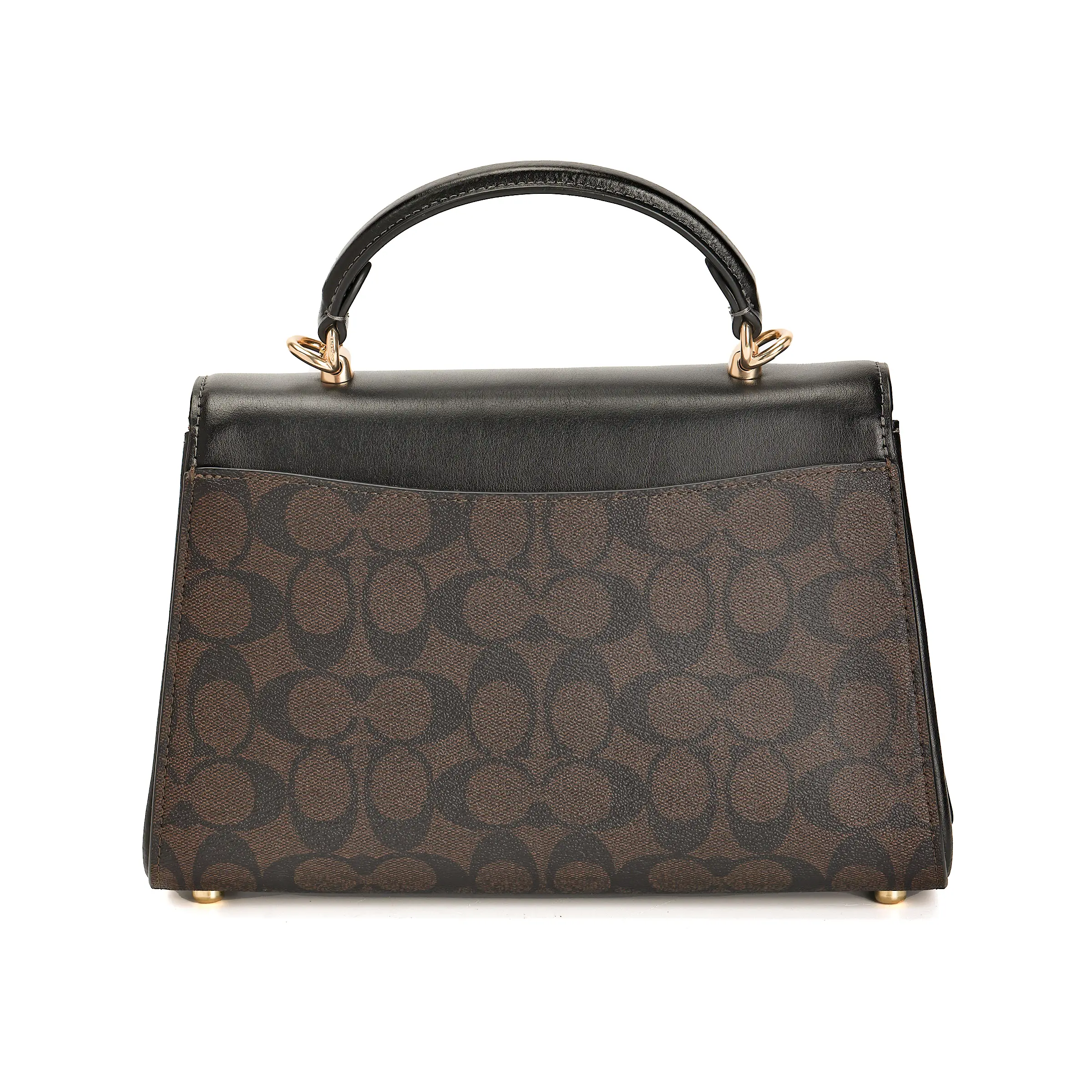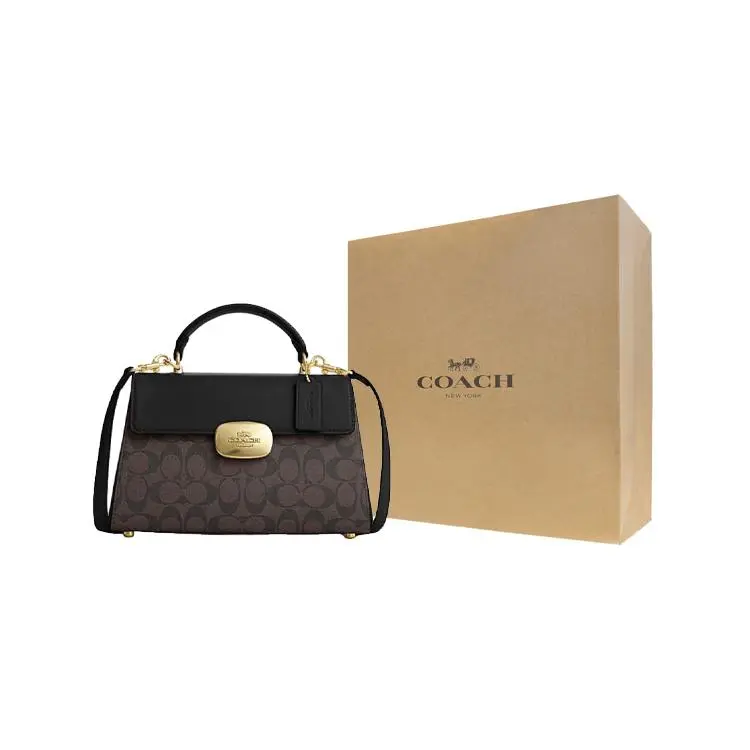 Materials: Exterior: Premium synthetic leather (PU) with COACH’s signature coated monogram canvas; Trim & accents: Genuine cowhide split leather (soft, flexible, and richly textured); Hardware: Brass-tone metal with anti-tarnish finish.