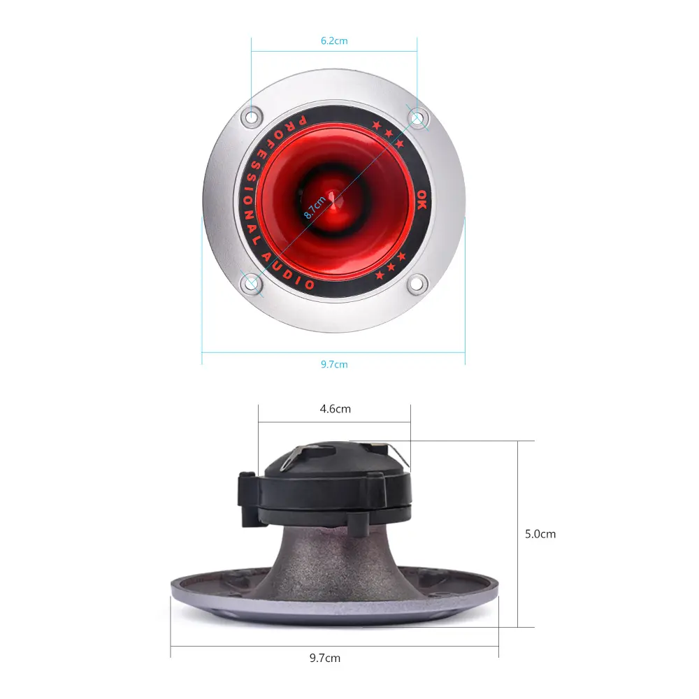 1.The sound of high-pitched hair is “zhi zhi” high-pitched sound, the instrument sounds loud, the human voice is small, and the sound is sharp. The main function of the treble head is to improve the high-pitched sound quality. The high-pitched head must be used with a subwoofer or a full-range horn. It cannot be used as a separate listening song!