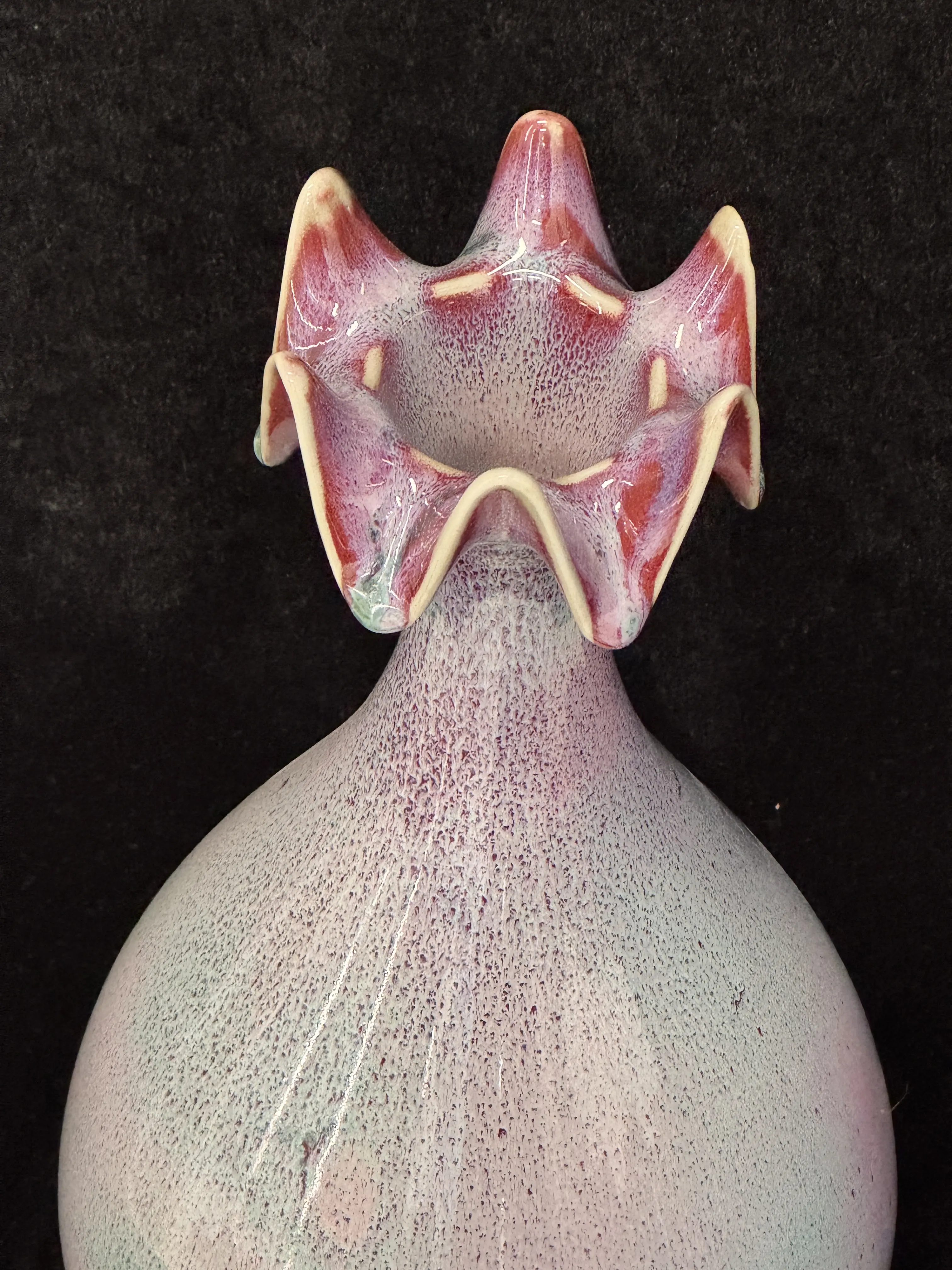 This unique vase features a ruffled flower top, adding a touch of vintage charm. Crafted with a pink-green kiln-fired glaze, it embodies Asian artistry. Perfect for home decor, it brings a piece of tradition into your space. The vase is a testament to meticulous craftsmanship, making it a standout piece.