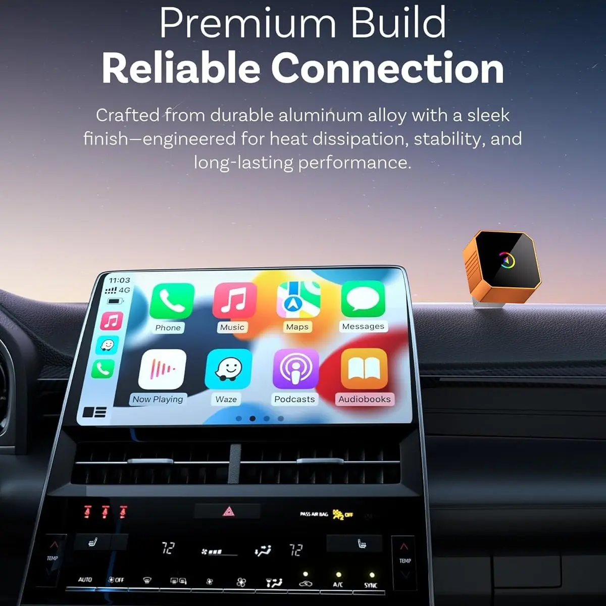 ·【Ultra-Mini Design, Hyper Performance】Tiny & compact box, new stylish portable design, no clutter & shaking cable while driving. Aimoon mini wireless CarPlay adapter Compasses features 2026 new chipset that allows it to blend effortless into your vehicle cabin while also offering superb responsive. Rigorously tested for 50,000+ plug cycles, it’s built tough for commuters, weekend explorers, and long-haul travelers who need gear they can rely on