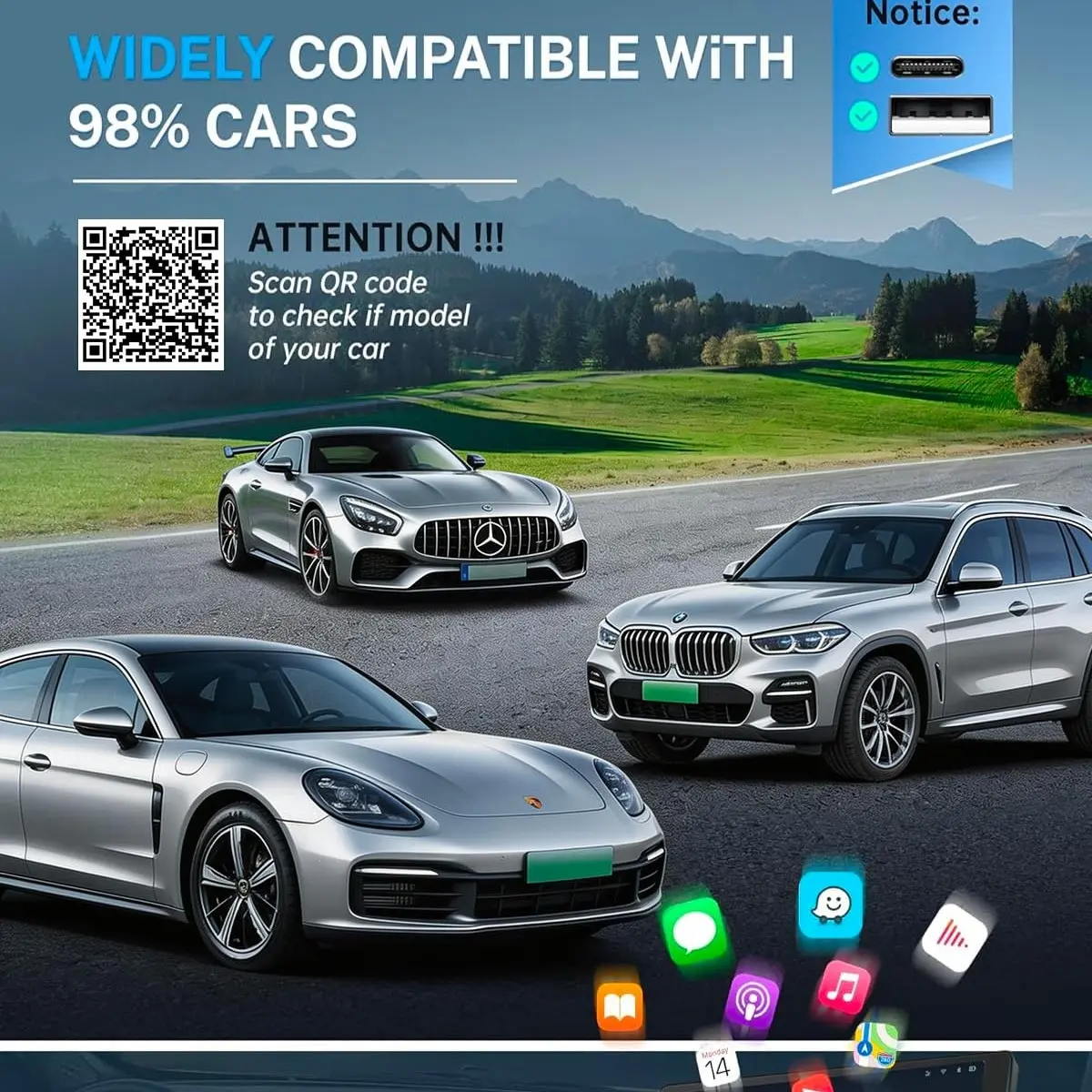 ·【Wide Compatibility, Easy to Use】Automotive Compasses Works with most cars (2016+) with wired CarPlay or Android Auto Compasses , and supports iPhone (iOS 10+) and Android phones (Android 11+ with 5GHz WiFi). Keeps your original car controls exactly the same.(Whether using touchscreen or steering wheel buttons, everything feels familiar—no new learning curve needed.)