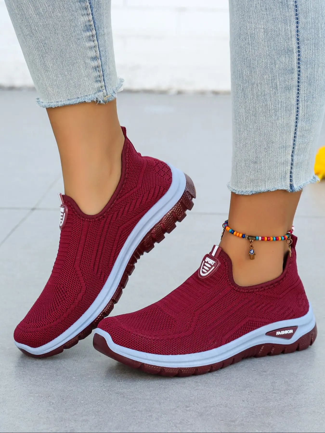 Women's Slip On Walking Shoes, Breathable Knit Mesh Casual Sneakers, Lightweight Comfortable Non Slip Athletic Shoes for Daily Commute, Outdoor Walking, Elderly & Mom Footwear