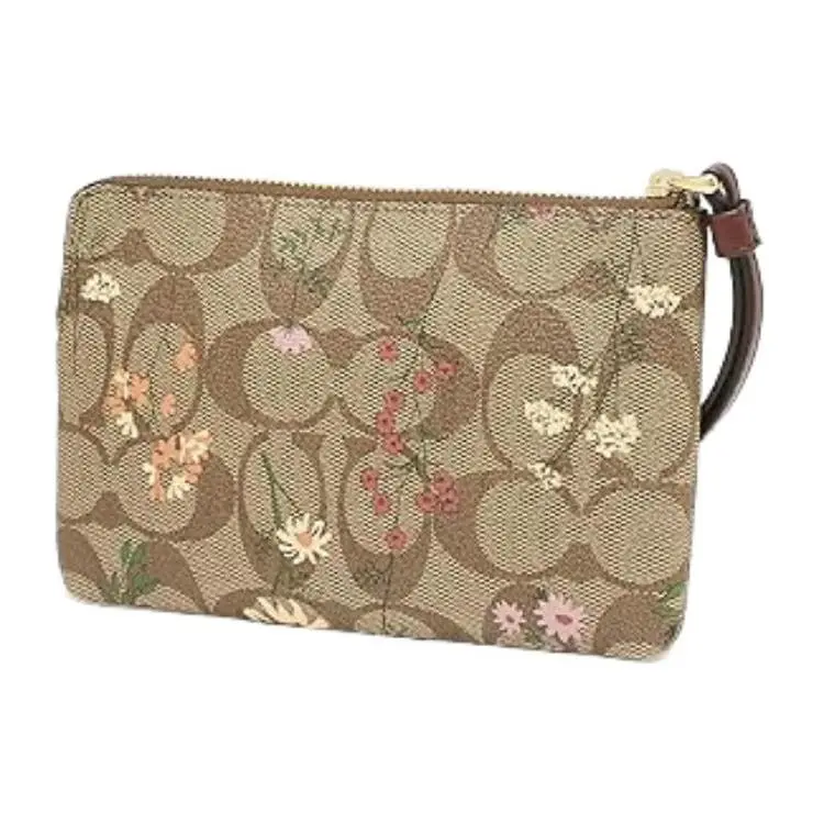 COACH Corner Zip 16 Classic Monogram Floral Print Coated Canvas Clutch Bag for Women, Khaki
