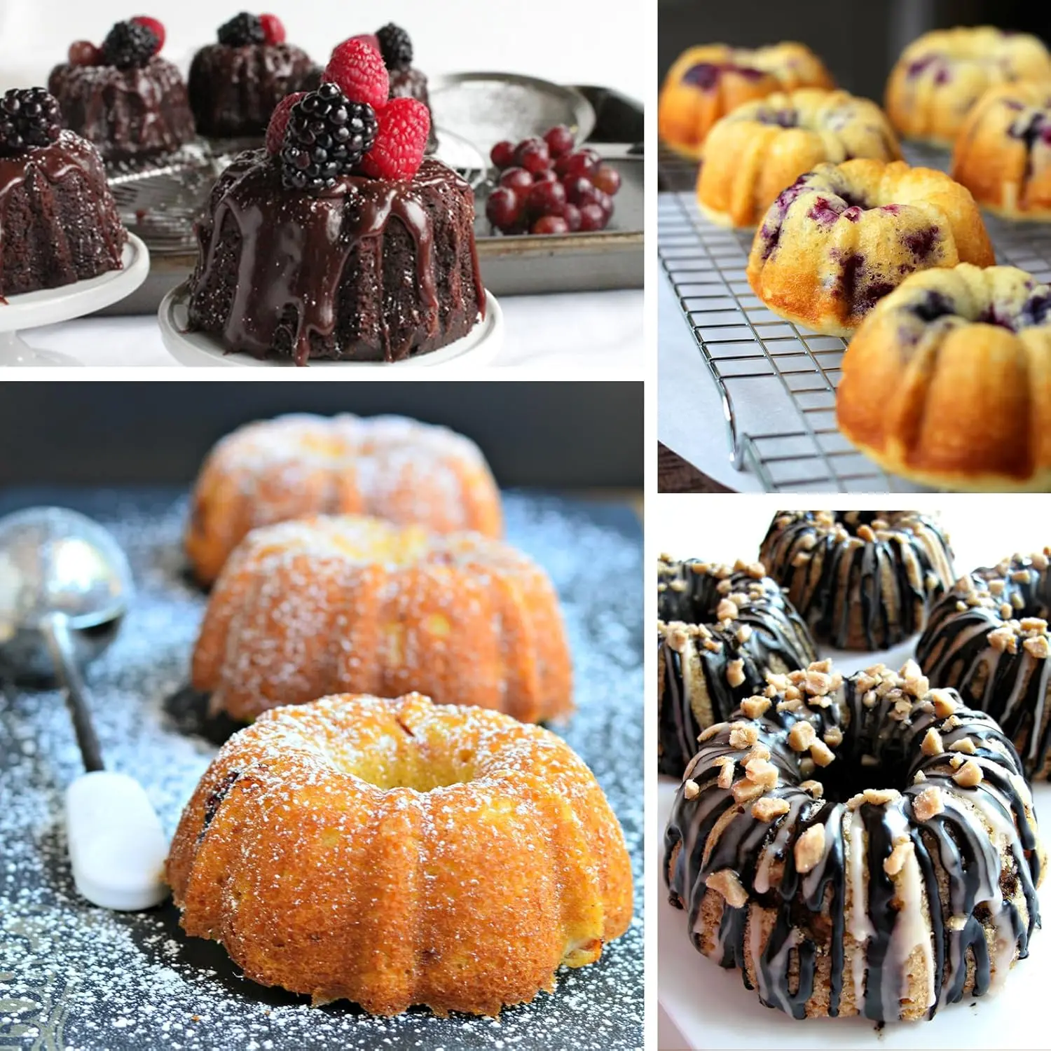 ·Mini Fluted Tube Pan: allows you to easily bake small cakes, mini cakes have the same beautiful appearance as large cakes, but also according to the different tastes of the sauce, each mini cake portion is just right, do not have to worry about the waste of ingredients and the problem of inconsistency in taste for many people