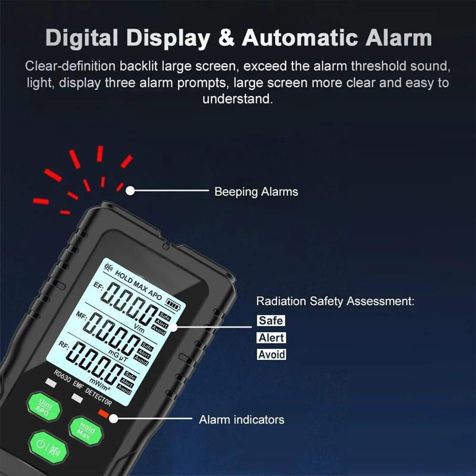 EMF Detector - 3-in-1 Electromagnetic Radiation Tester for AC Magnetic, AC Electric & Microwave Fields, Portable EMF Meter for Home, Office & Smart Meters, Suitable for General Household Use