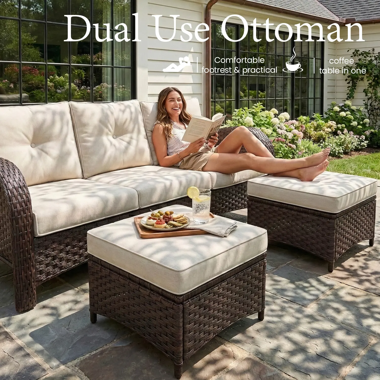Defies Seasons: Adopt weather-resistant rattan material, which won't crack when placed outdoors in winter. It won't fade under long-term exposure to the sun in summer, maintaining this outdoor funiture appearance as fresh and new as ever.