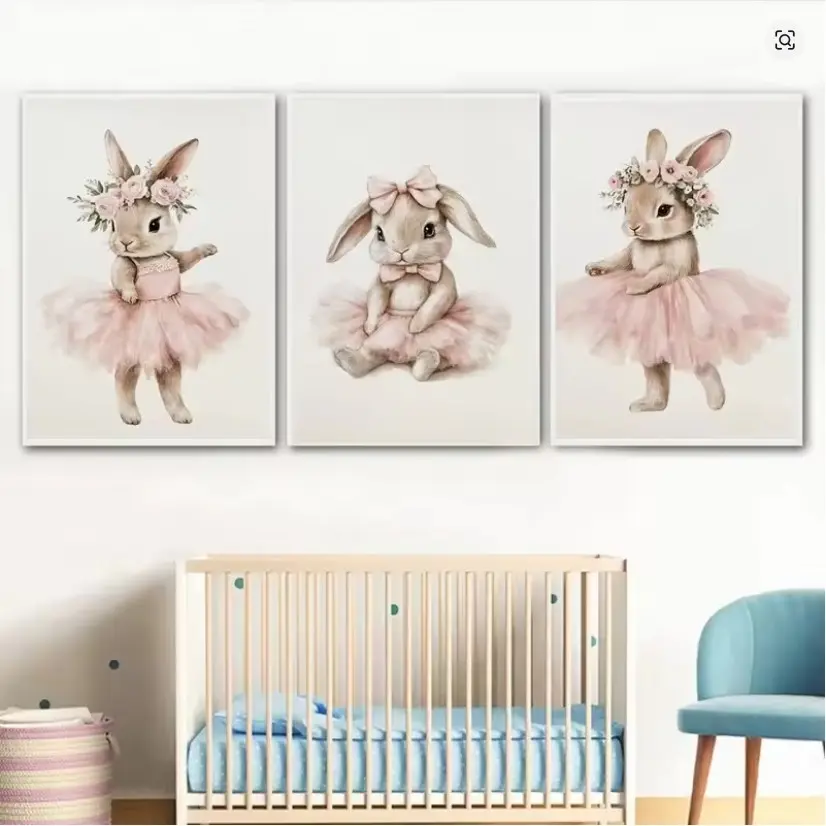 1pc Frameless Cute Ballerina Bunny Ballet Animal Posters and Prints Canvas Printing Wall Art Picture for Girls Room Nursery Home Decor (9 different styles to choose from)