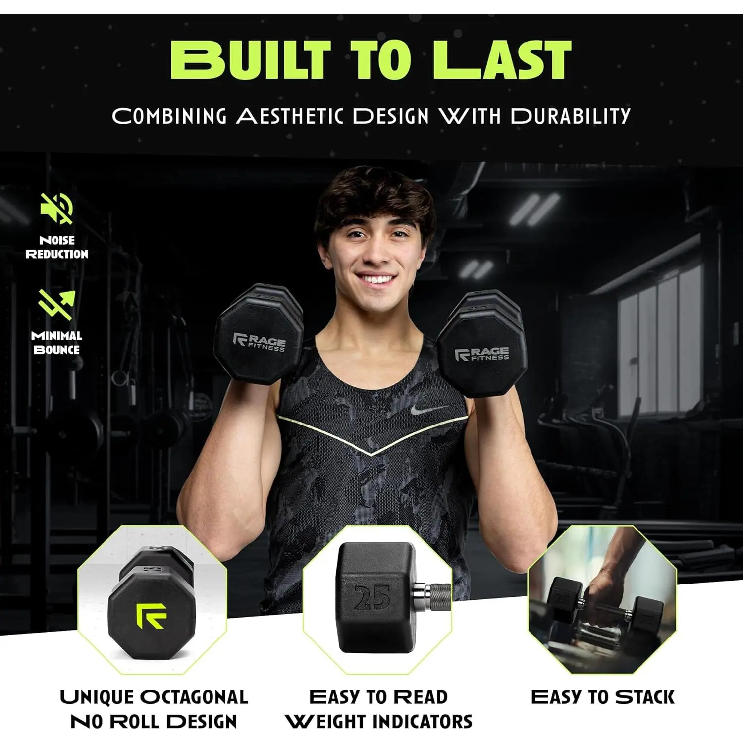 Rubber Coated Dumbbells - No Roll Design Easy-Grip Steel Knurled Handle, Weights Dumbbells Set for Strength Training - Ideal Weights Set for Home Gym - 10-60 LBS SOLD INDIVIDUALLY