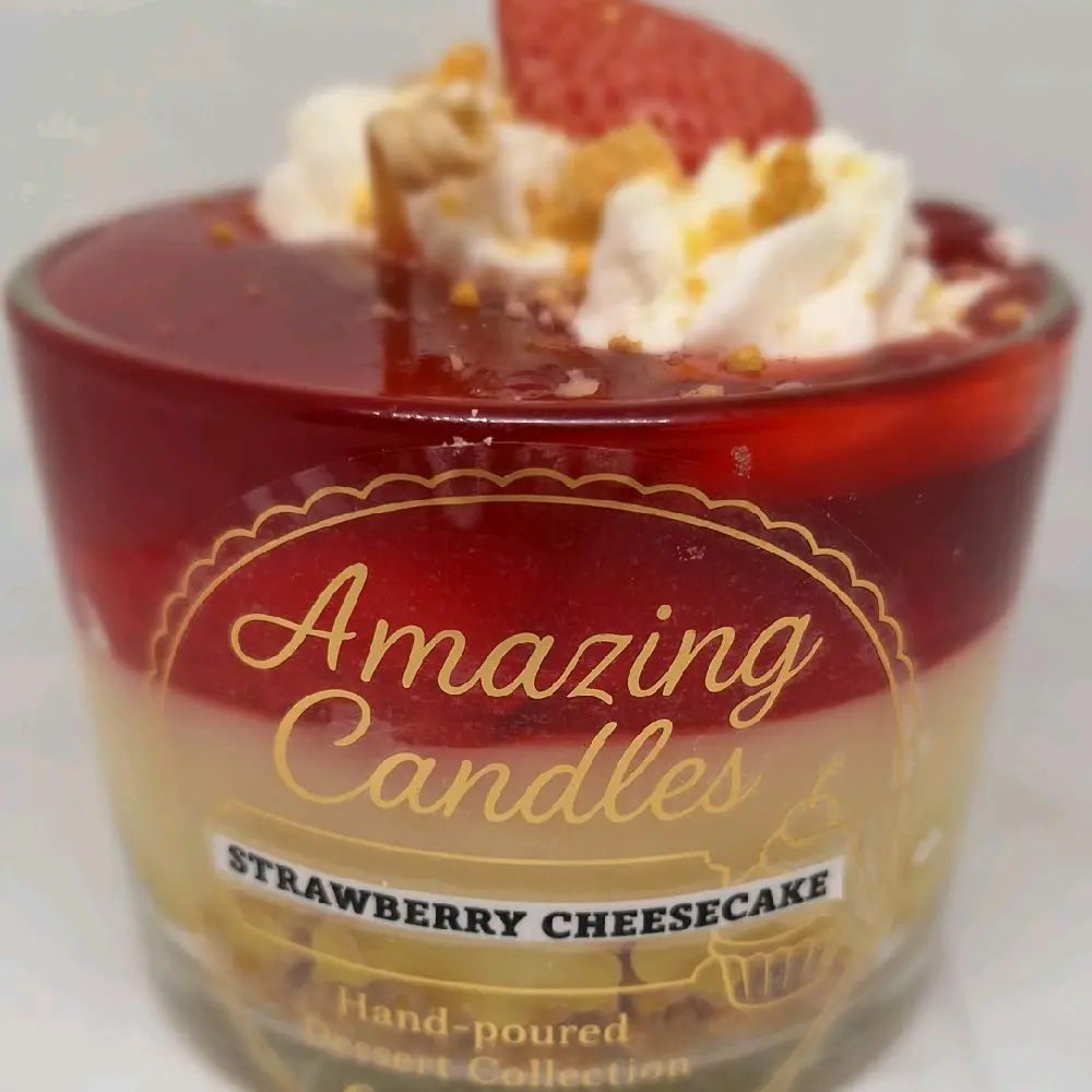 Amazing Candles Strawberry Cheesecake Hand-poured Dessert Collection Candle with Whipped Cream and Crumbs