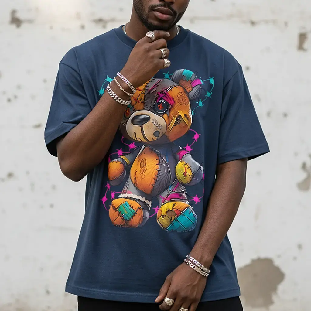 ·Perfect for men's wear, this t-shirt can be paired with various outfits. It's a classic choice for casual outings, adding a playful touch to your wardrobe. Embrace the fun and comfort of this bear-printed top. 🎨