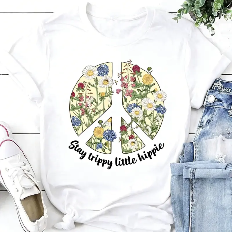 5. Stay Trippy Little Hippie Flowers T-Shirt, Graphic Hippie Soul Shirt, Hippie Sign Unisex Shirt, Peace Shirt, Boho Style Fan Gift T-Shirt