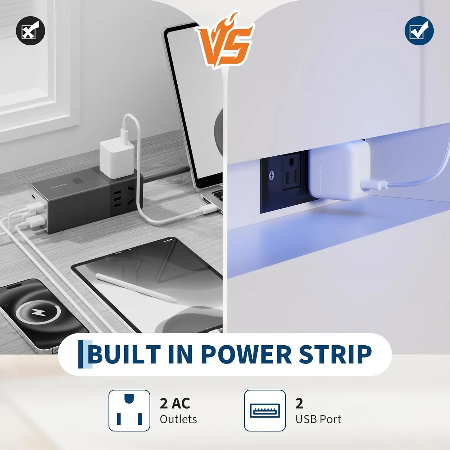 ·The built-in smart charging station is a highlight, equipped with 2 AC outlets and 2 USB ports, allowing you to conveniently power multiple devices simultaneously. This thoughtful feature keeps your electronics organized and easily accessible, enhancing your entertainment experience.