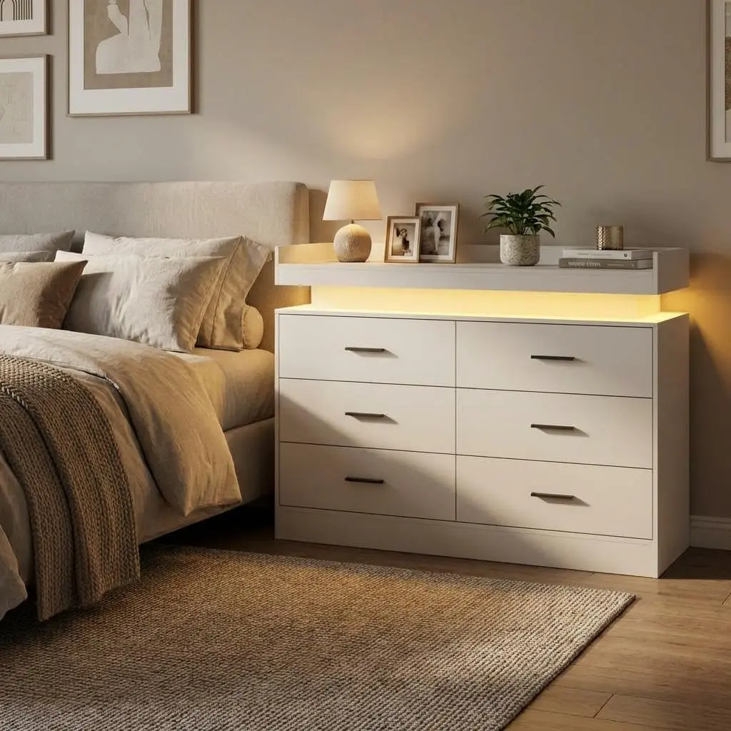 ·Designed for ample storage, the unit offers a spacious top surface perfect for a TV, serving trays, or decorative items, alongside six drawers that provide generous space to neatly store tableware, snacks, or everyday essentials. This versatile storage solution helps maintain a clutter-free environment.