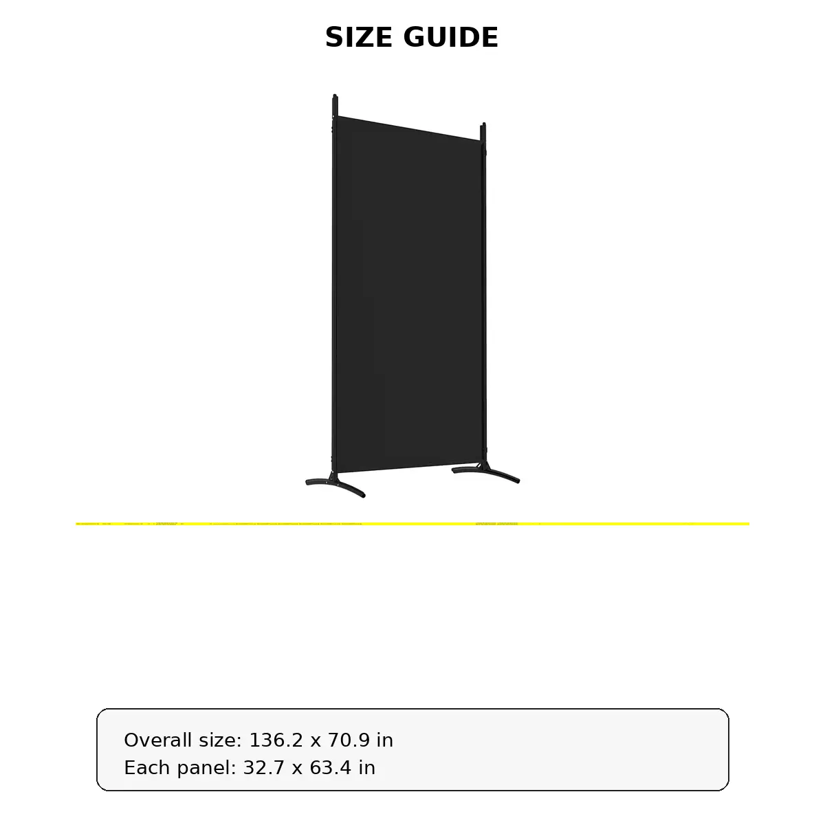 Create a more private and flexible living space with this 4-Panel Room Divider. Designed with fabric panels and an iron frame, it offers a simple and clean look while remaining breathable and durable for daily use. The foldable structure makes it easy to reposition or store without taking up much space. Use it to separate a bedroom area, divide part of a room, reduce direct sunlight near a window, or create a simple background partition. Overall size is 136.2 x 70.9 inches, and each panel measures 32.7 x 63.4 inches. Assembly is required. Please note that the fabric allows some light to filter through and does not provide full blackout coverage.