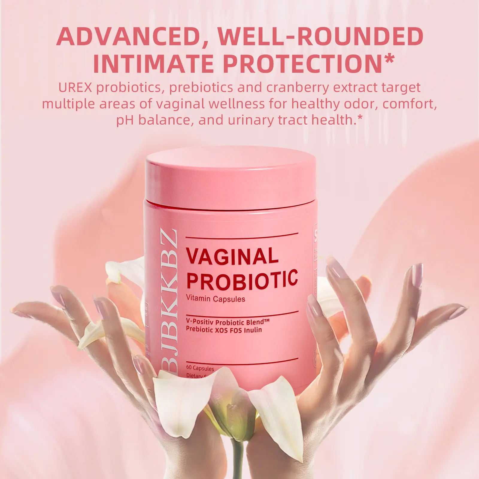 BJBKKBZ Vaginal Probiotic Vitamin Capsules, V-Positiv Probiotic Blend with Prebiotic XOS FOS Inulin, Supports Vaginal pH Balance, Yeast Balance & Urinary Tract Health, 60 Count Dietary Supplement