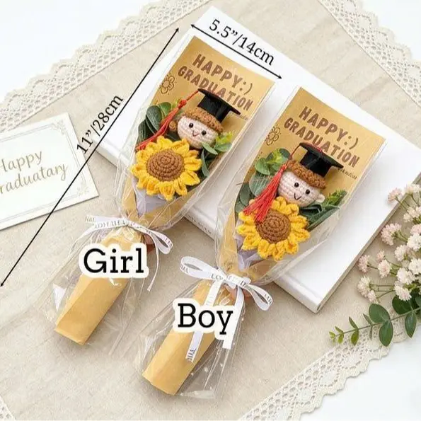 Occasion & Usage: This crochet bouquet is an ideal gift for the 2026 graduation season – great for preschool/kindergarten grads, high school seniors, college graduates, or even advanced degree celebrations. It’s a fun, eye-catching gift that stands out from ordinary cards or fresh flower bouquets. (No other personalization is needed or offered besides the doll’s custom features.) It also makes a beautiful table display during graduation parties and a lasting keepsake afterward.