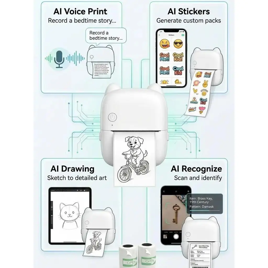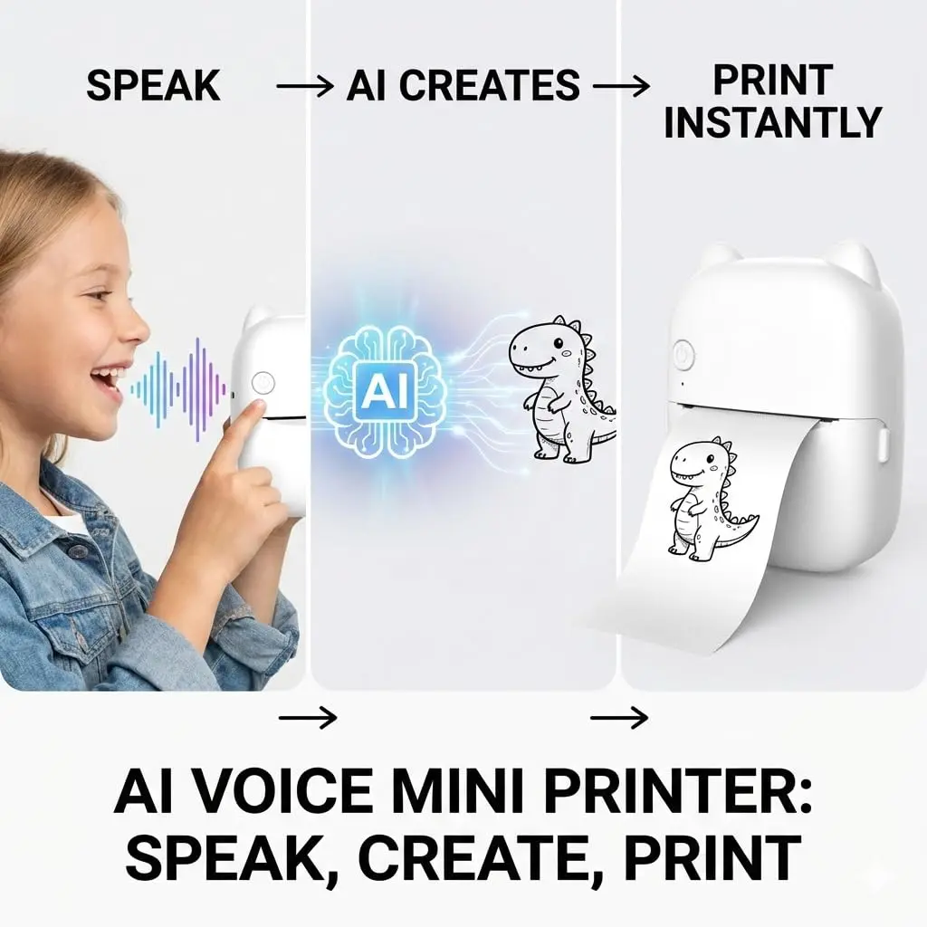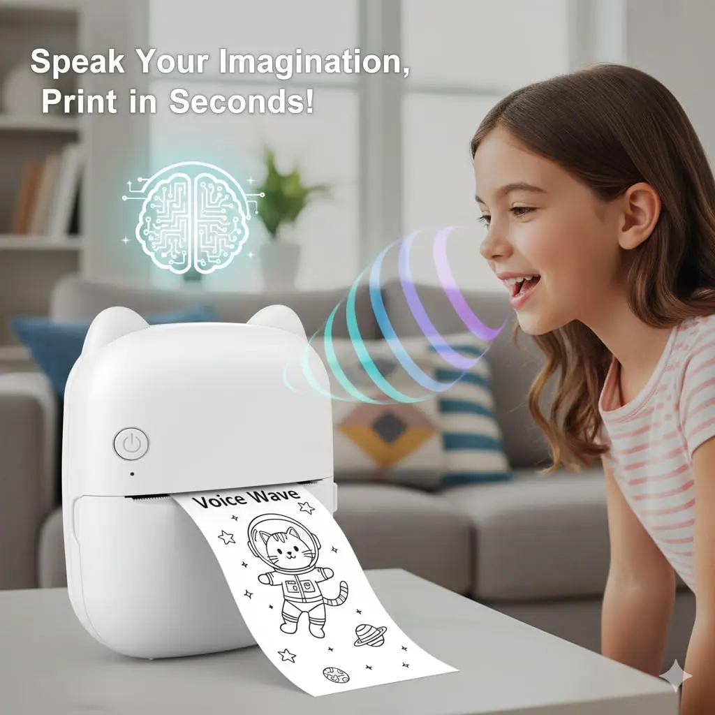 This AI-powered mini printer connects to WiFi and lets you speak directly to the device.After a simple one-time setup, just talk to the printer and watch your ideas come to life on paper.